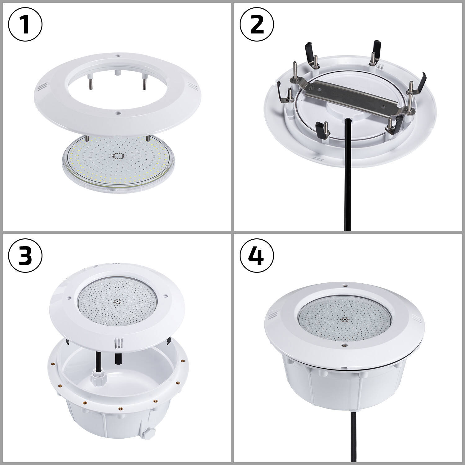Un angle de diffusion large assure une répartition lumineuse proche de 120°, créant un bain de lumière homogène sans zones d’ombre. Le blanc froid met en valeur la transparence de l’eau et la finition discrète du projecteur permet une intégration élégante dans tout aménagement extérieur.