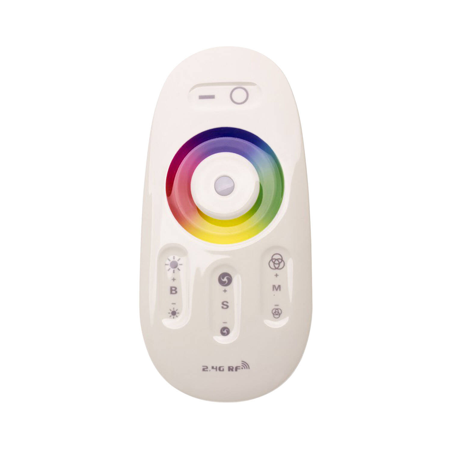 La télécommande RF fournie pilote les canaux RGBW de l'ampoule pour obtenir toutes les couleurs, ainsi que le blanc. Elle permet de régler l'intensité, d'activer des scènes ou programmes et de passer facilement du blanc chaud ou froid aux ambiances colorées. Le système RF évite les liaisons filaires entre la télécommande et le contrôleur.