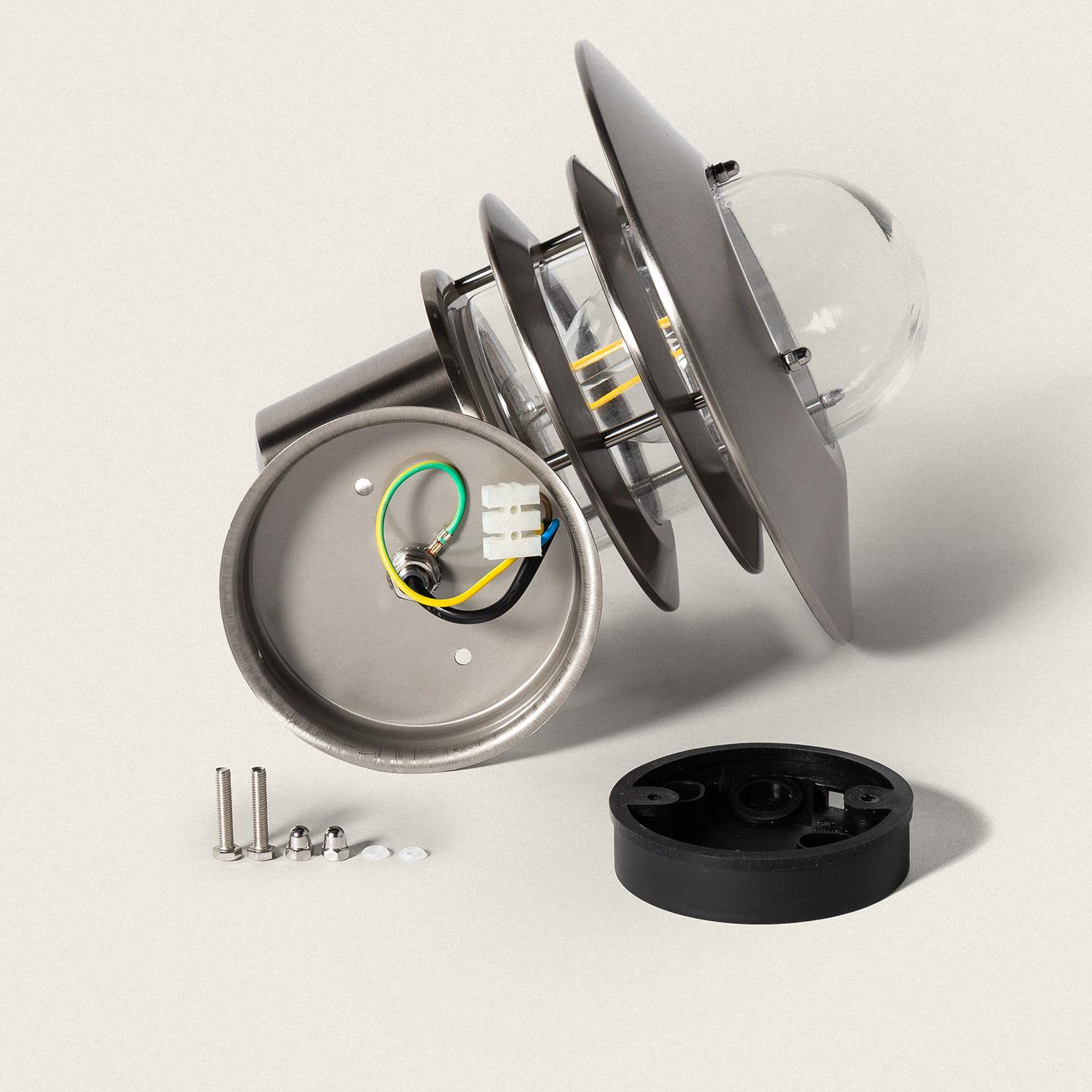 Sa structure en acier inoxydable confère robustesse et élégance, résistant aux agressions climatiques tout en conservant un éclat discret. Le verre transparent diffuse harmonieusement la lumière, créant une ambiance soignée sur façades et couloirs, sans compromettre la durabilité du luminaire.
