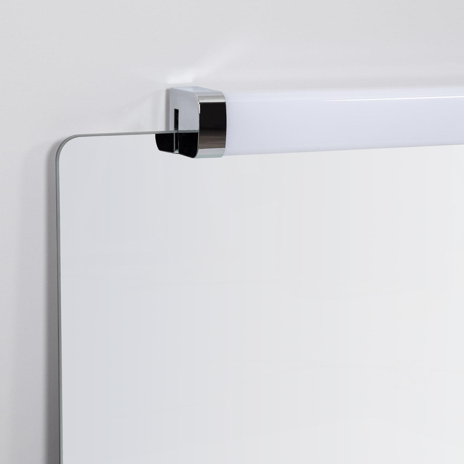 Spécialement pensée pour les miroirs, Vault accepte une épaisseur maximale de verre de 7 mm et se positionne parfaitement au-dessus ou au bord du miroir sans encombre. Son éclairage neutre et sans scintillement sublime les détails, pour des gestes quotidiens précis et rassurants.
