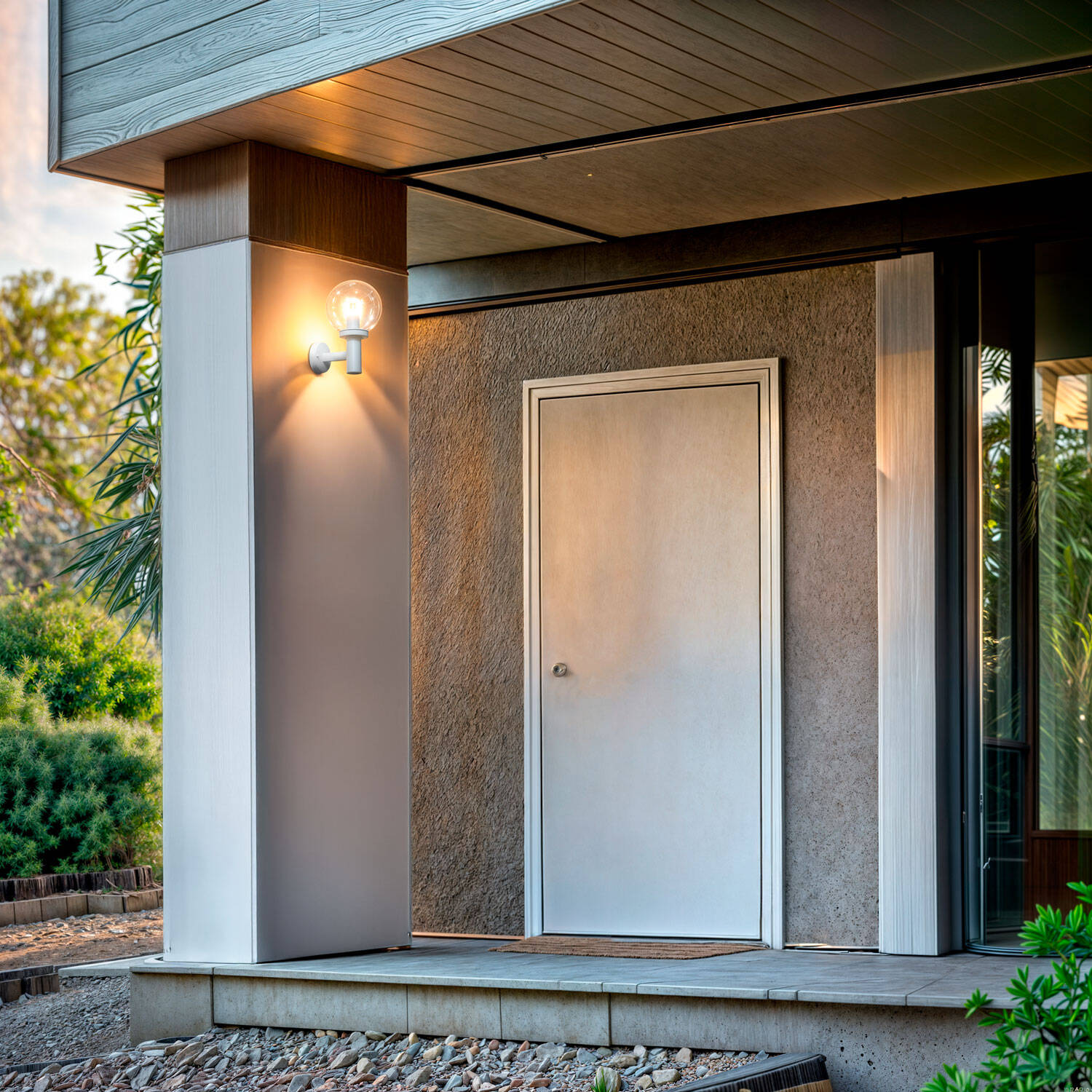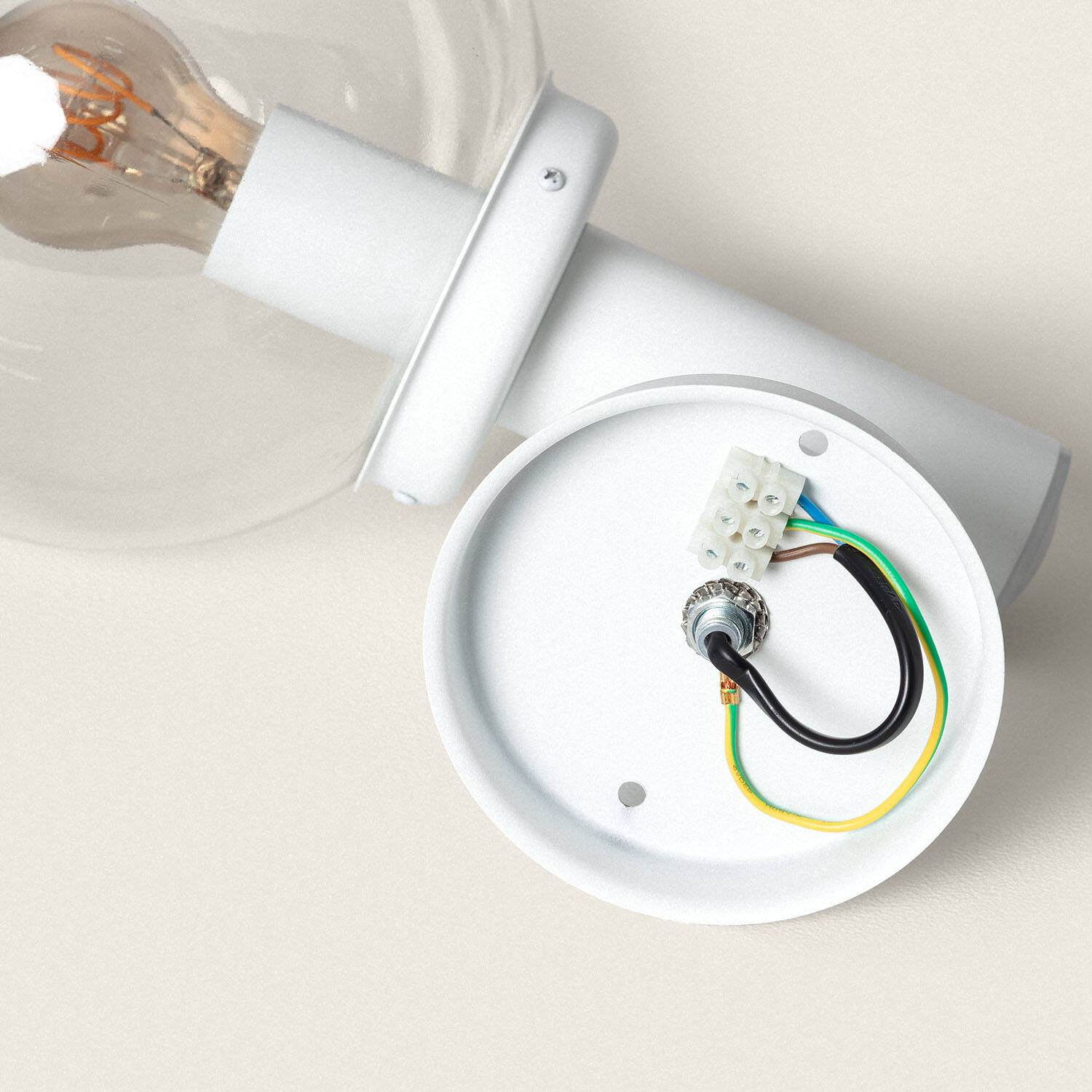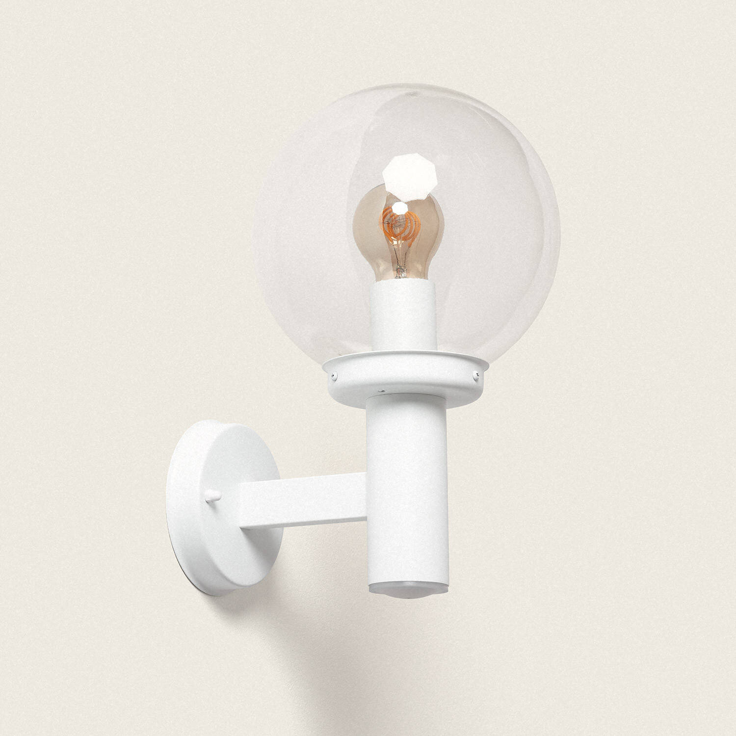 Finition blanche épurée et abat-jour transparent facilitent l’entretien et valorisent l’architecture sans surcharge visuelle. L’entretien est simple et la transparence du méthacrylate met en scène l’ampoule choisie pour créer un éclairage décoratif et fonctionnel, s’adaptant aussi bien aux maisons contemporaines qu’aux façades classiques.