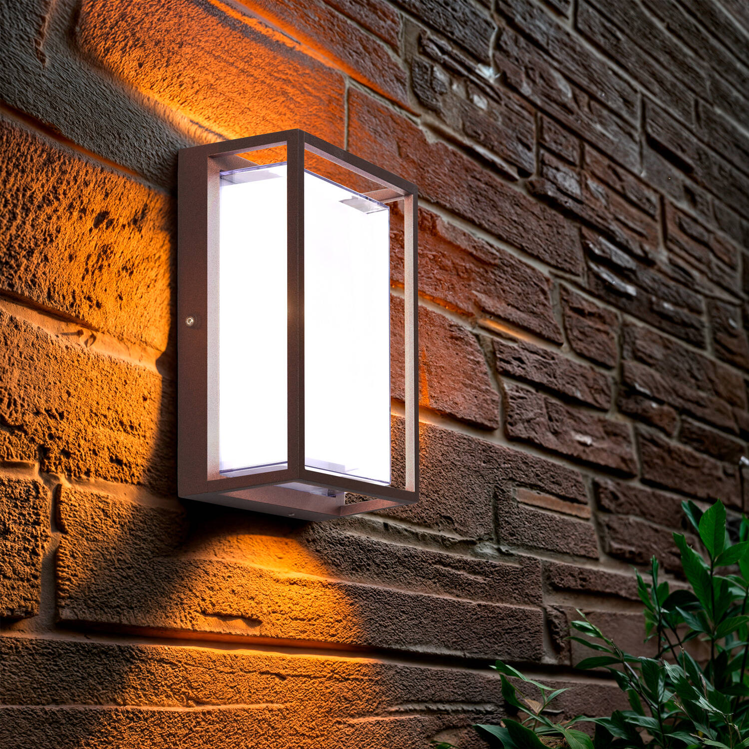 Le boîtier rectangulaire en aluminium offre une silhouette contemporaine qui valorise façades et entrées. La finition rouille apporte une note chaleureuse et sophistiquée, idéale pour s’harmoniser avec des matériaux bruts ou modernes sans compromettre l’esthétique du bâtiment.