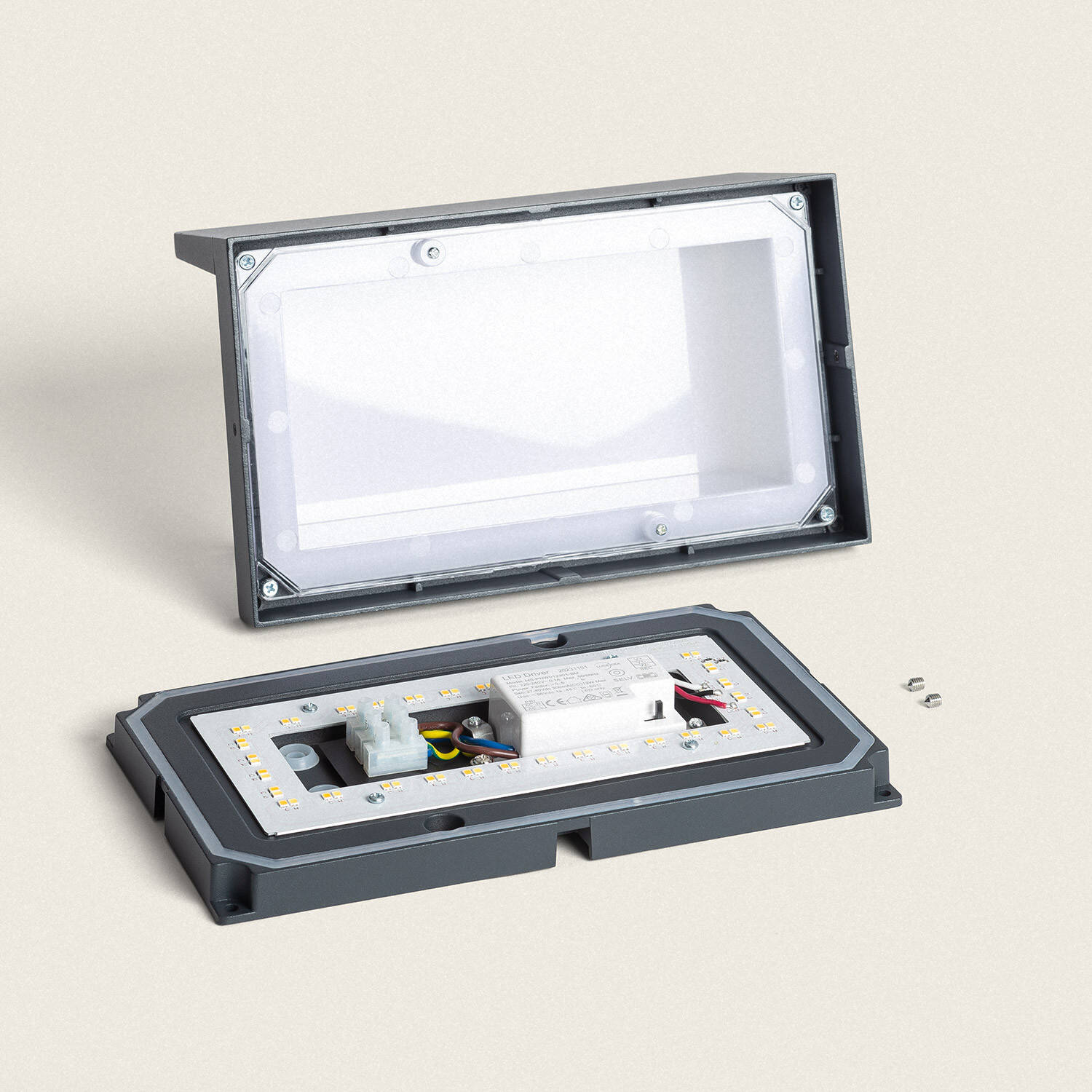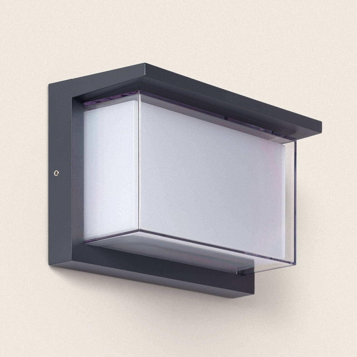 Nettoyez régulièrement la coque aluminium anthracite et le diffuseur avec un chiffon doux et de l'eau savonneuse, puis séchez soigneusement. Évitez les solvants, les produits abrasifs et les jets d'eau à haute pression qui peuvent détériorer les joints et la finition. Vérifiez périodiquement les fixations et l'étanchéité pour assurer la longévité de l'applique extérieure.