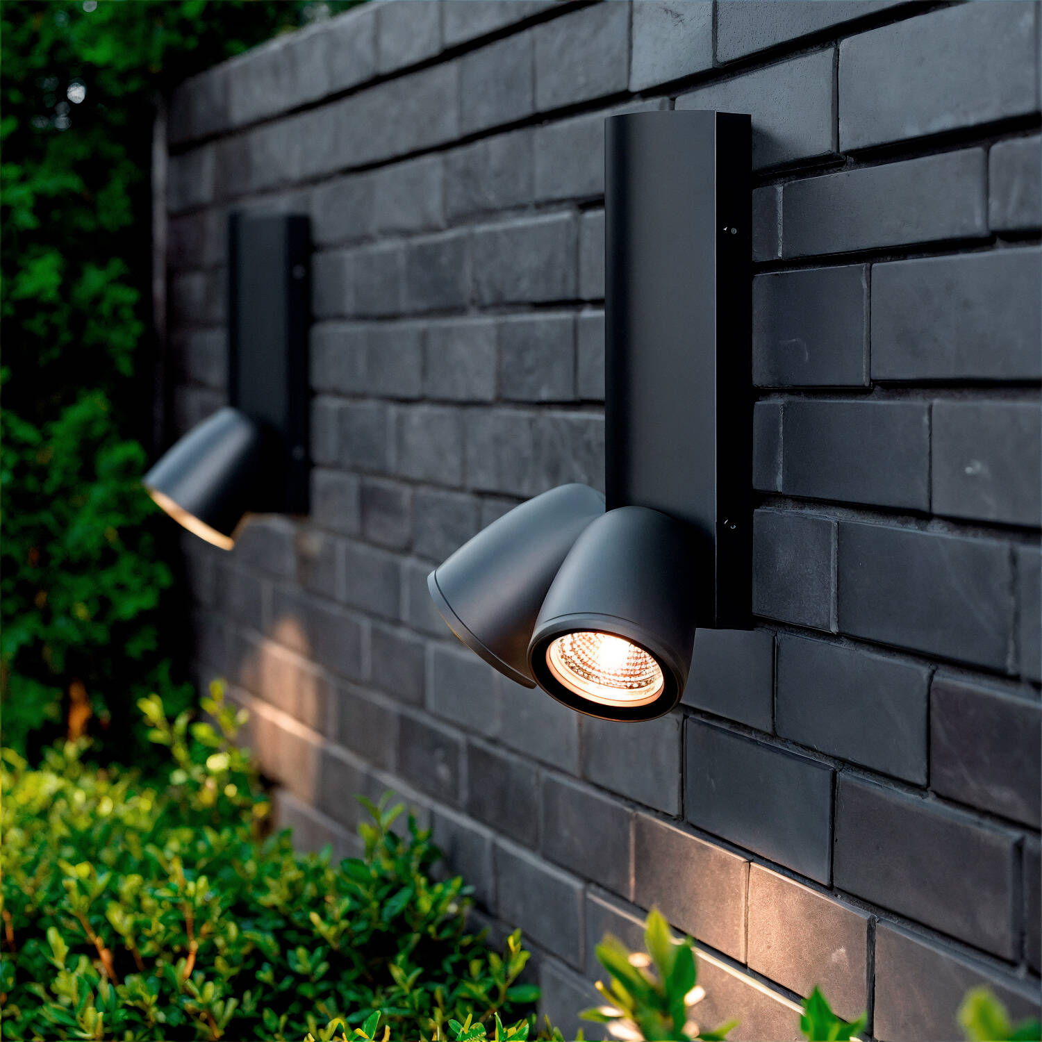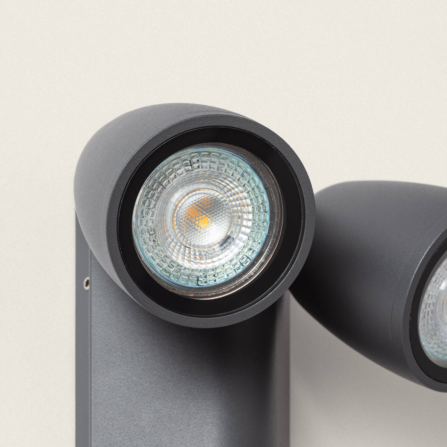 Deux têtes orientées offrent un éclairage directionnel idéal pour mettre en valeur cheminements et détails architecturaux. Conçue pour recevoir des ampoules GU10 COB jusqu’à 10 W, l’applique délivre un faisceau précis de 24º garantissant une lumière ciblée et sculptante et économe en énergie.