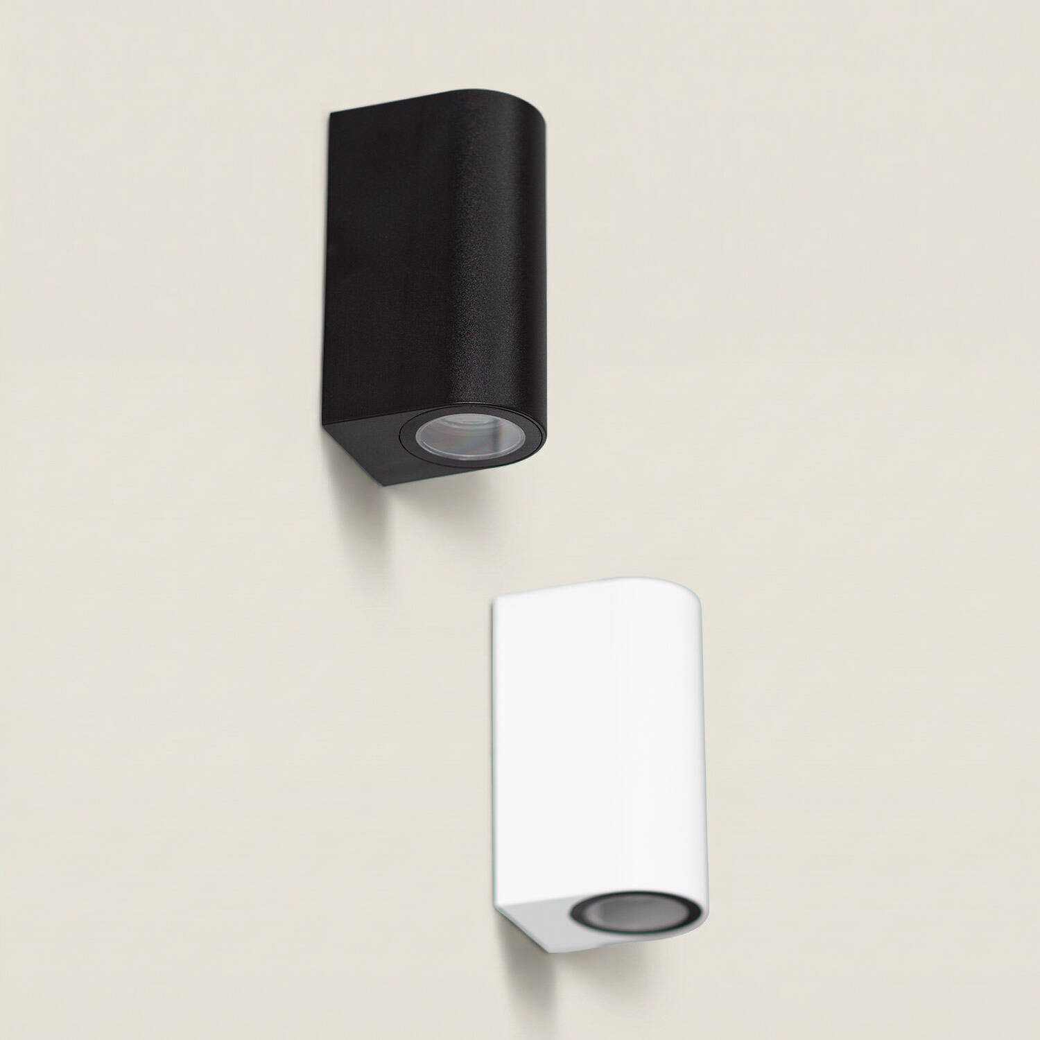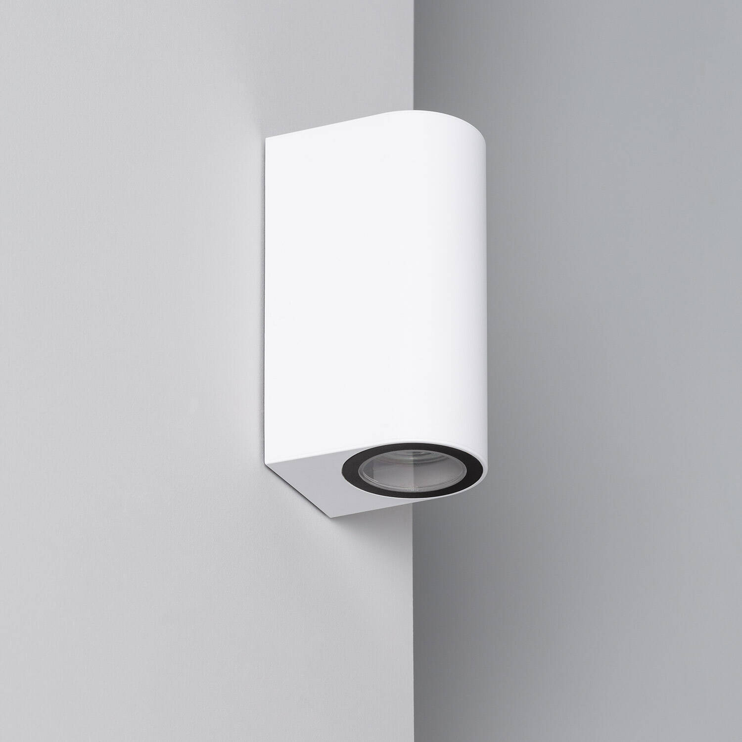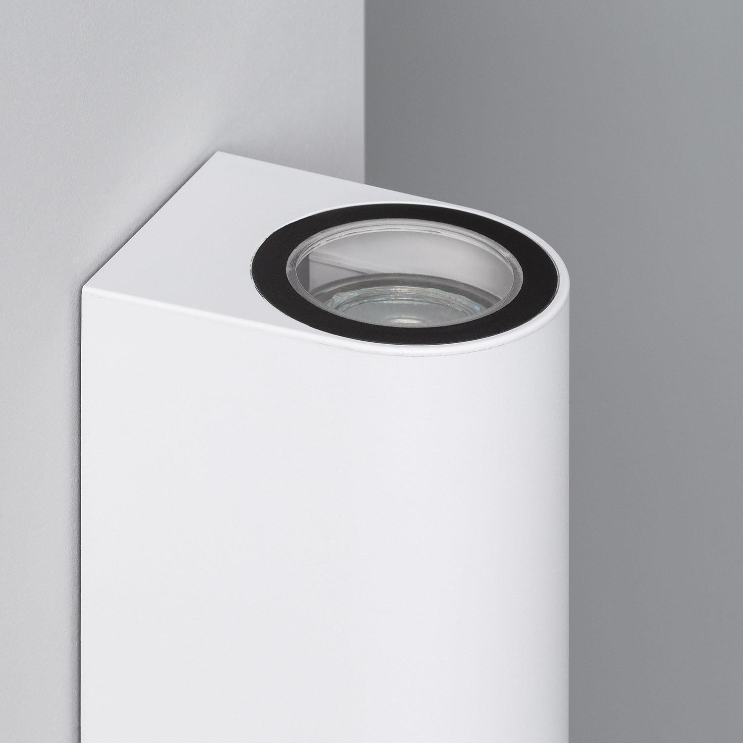 La configuration double face éclaire vers le haut et vers le bas pour créer des jeux d’ombres et de lumière précis. Elle accueille deux ampoules GU10, permettant de combiner intensité et température de couleur selon l’ambiance souhaitée, du balisage subtil à la mise en valeur architecturale.