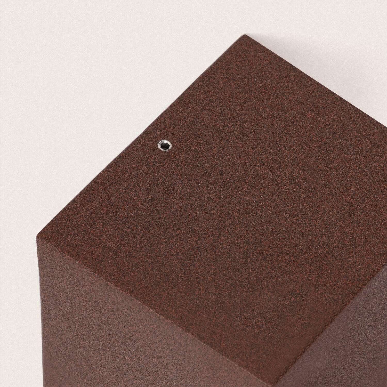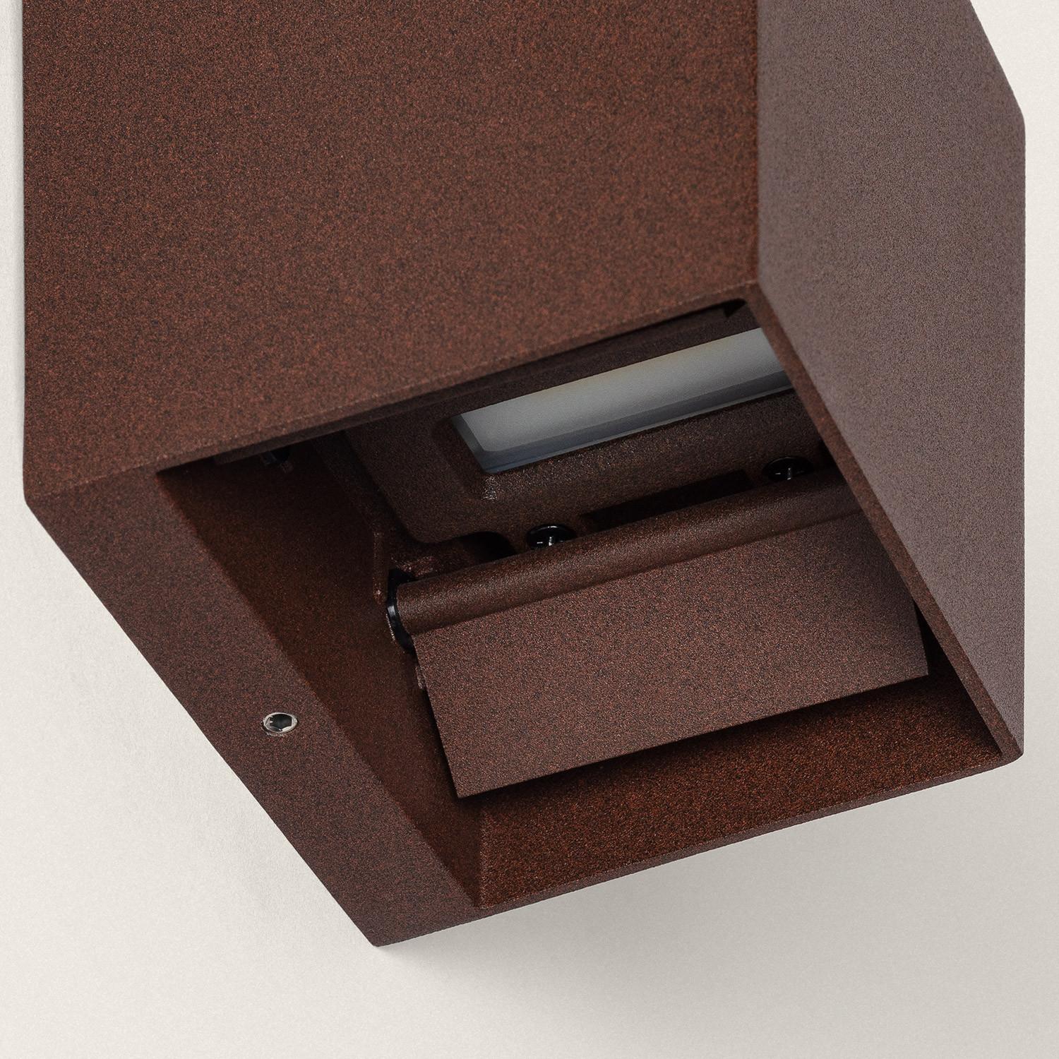 Son silhouette cubique et sa finition rouille confèrent un caractère architectural discret, parfaitement assorti aux façades contemporaines ou traditionnelles. Compacte, l’applique projette une lumière up & down qui met en valeur textures et volumes, apportant un accent stylistique sans envahir l’espace.