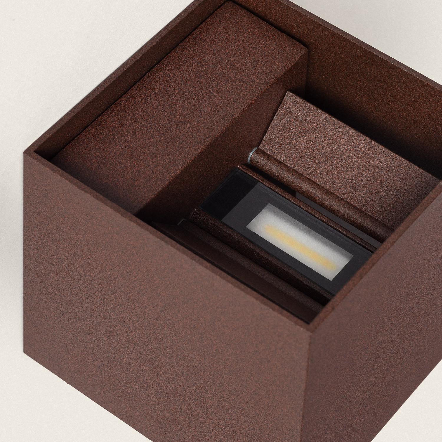 Cette applique murale extérieure LED en aluminium finition rouille séduit par son design cubique compact et son éclairage double face up and down, idéal pour souligner une façade ou une entrée. Sa lumière CCT sélectionnable permet d’adapter l’ambiance, avec une protection IP65 pensée pour un usage extérieur durable.
