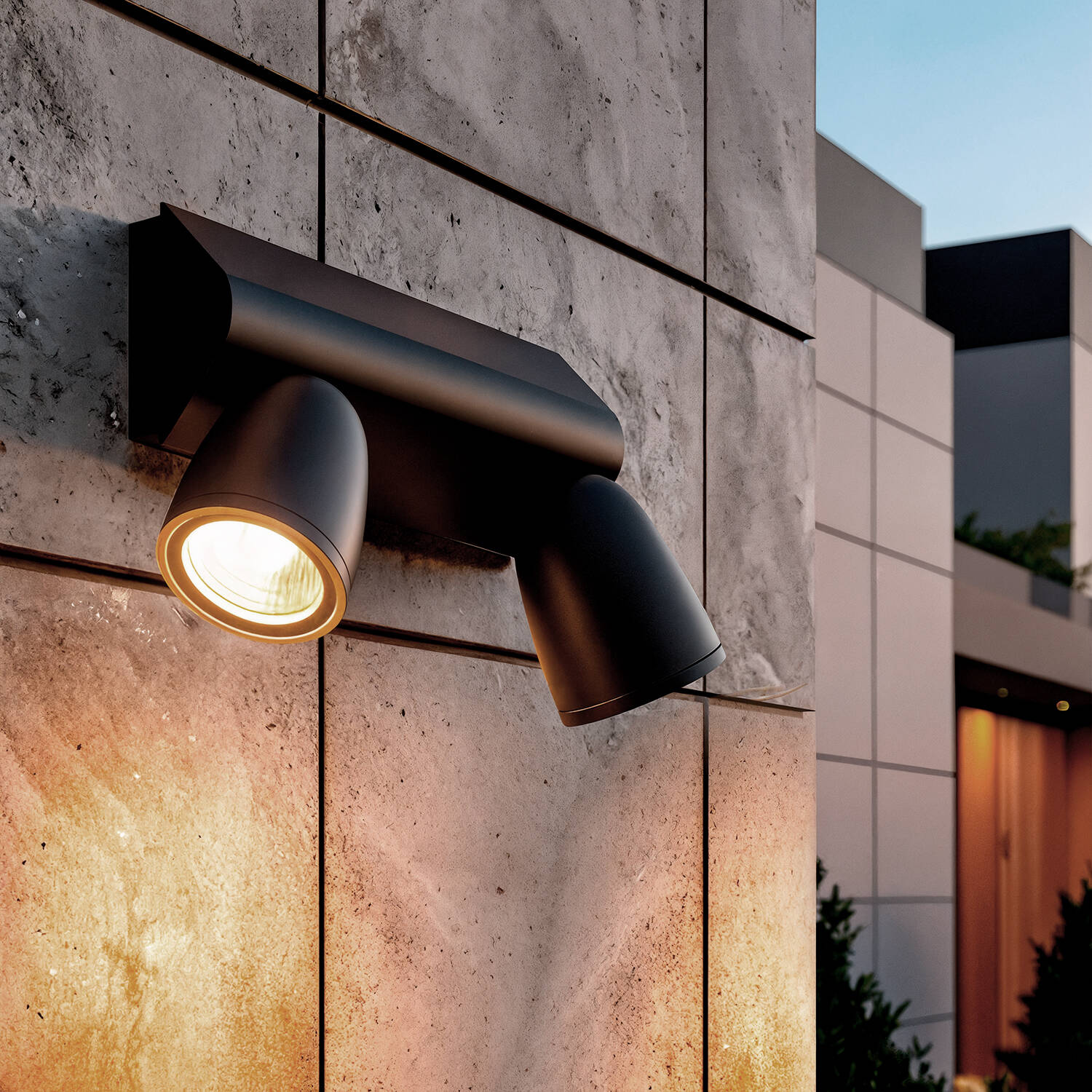 Les deux têtes orientables permettent de diriger précisément le faisceau de 24° pour souligner une façade, un porte d’entrée ou un détail architectural. Ce contrôle ciblé de la lumière crée des ambiances soignées tout en évitant l’éblouissement et en valorisant les volumes extérieurs.