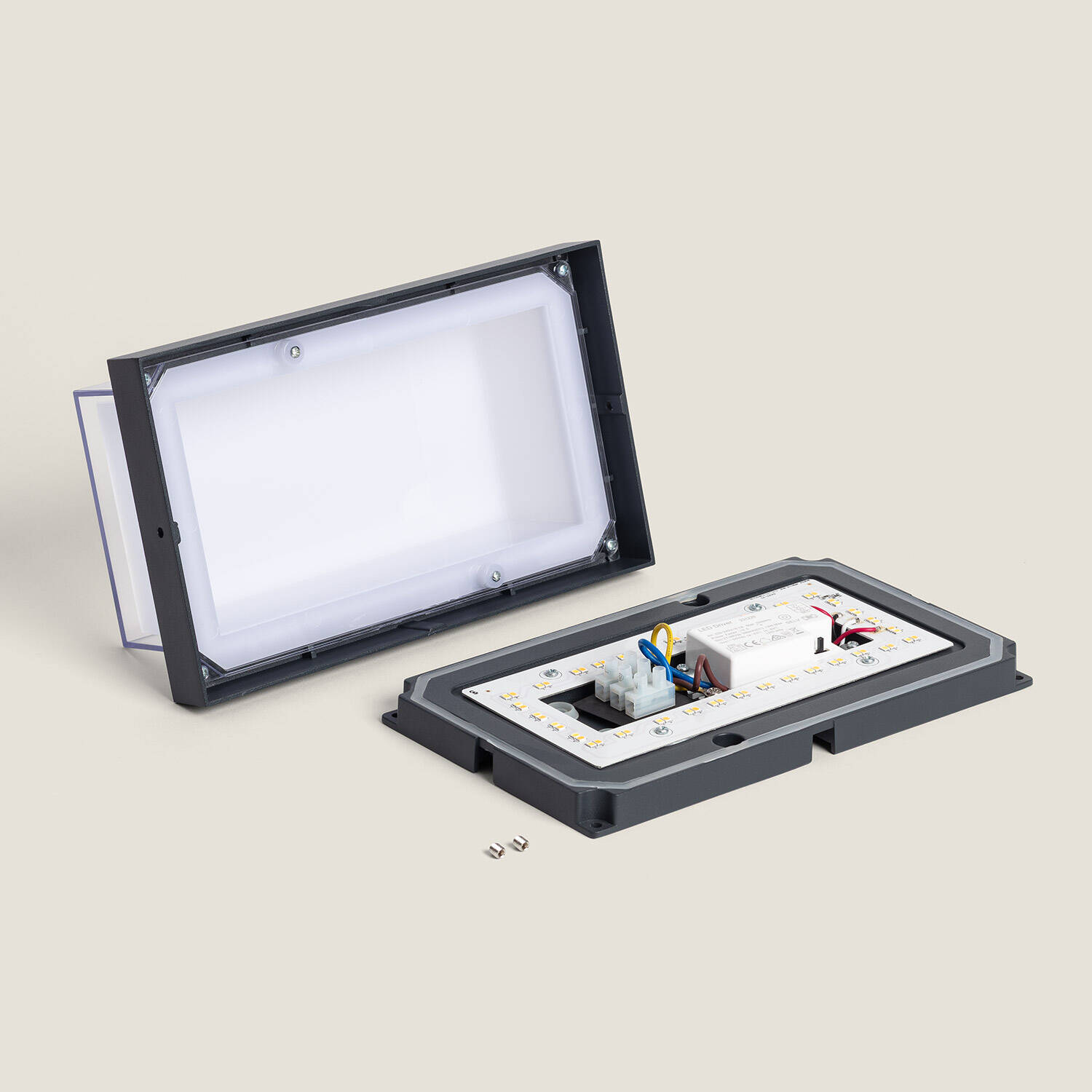 Conçue en aluminium et matériaux techniques, l’applique présente une finition anthracite raffinée et durable. Sa conception protège efficacement contre l’humidité et les sollicitations extérieures, assurant une tenue esthétique et mécanique sur la durée, même en conditions extérieures exigeantes.