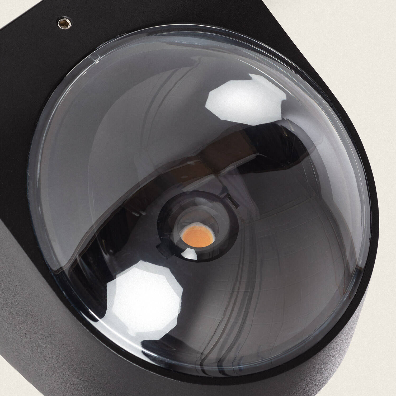 Le noir mat associé à une lentille transparente crée un esthétisme contemporain et discret. Les demi-sphères diffusantes sculptent la lumière en douceur, apportant une touche sophistiquée aux façades modernes tout en restant sobre et cohérent avec différents styles architecturaux extérieurs.