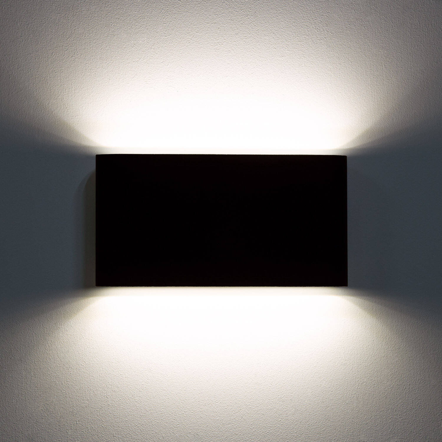 Le format rectangulaire et l’éclairage double-face dirigent la lumière vers le haut et le bas pour une diffusion équilibrée sur les murs. Ce jeu lumineux structure les volumes, accentue les textures et améliore la sécurité nocturne en balisant discrètement chemins et façades avec une élégance contemporaine.