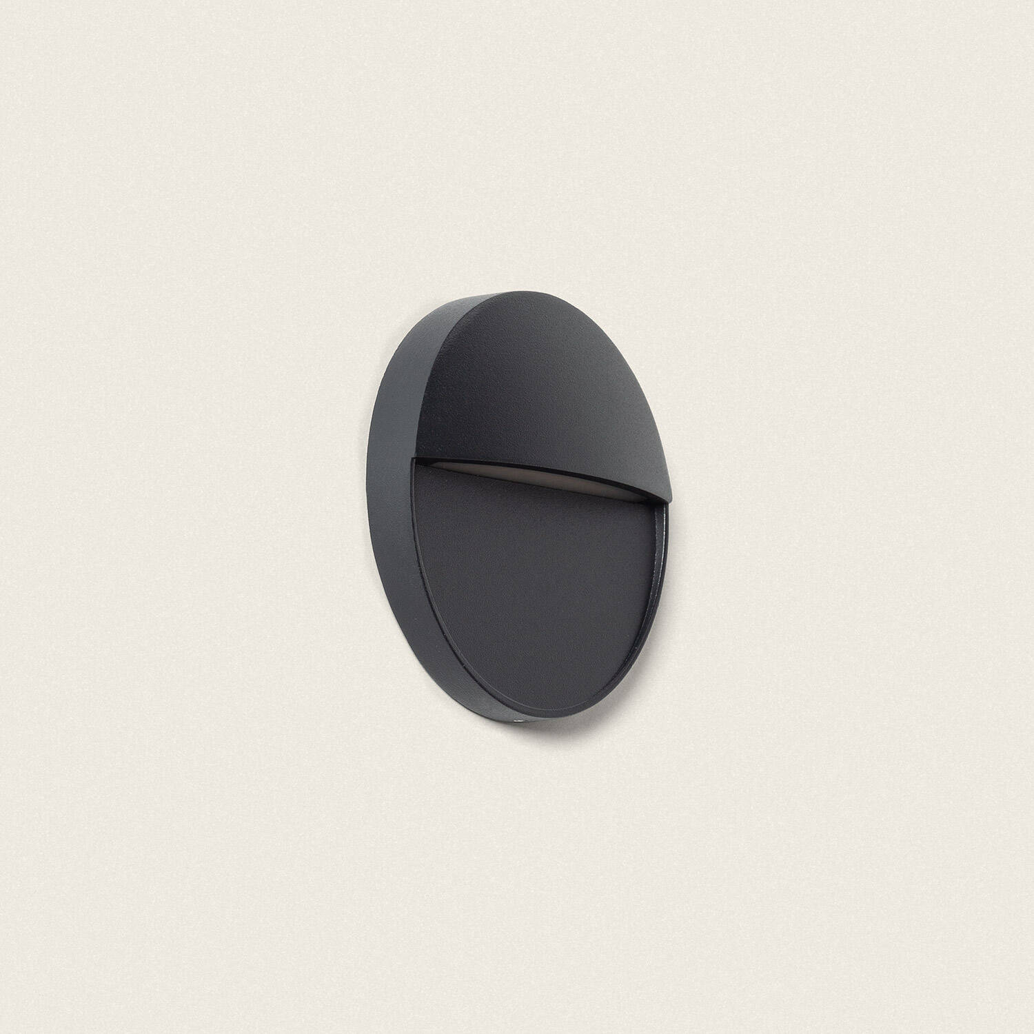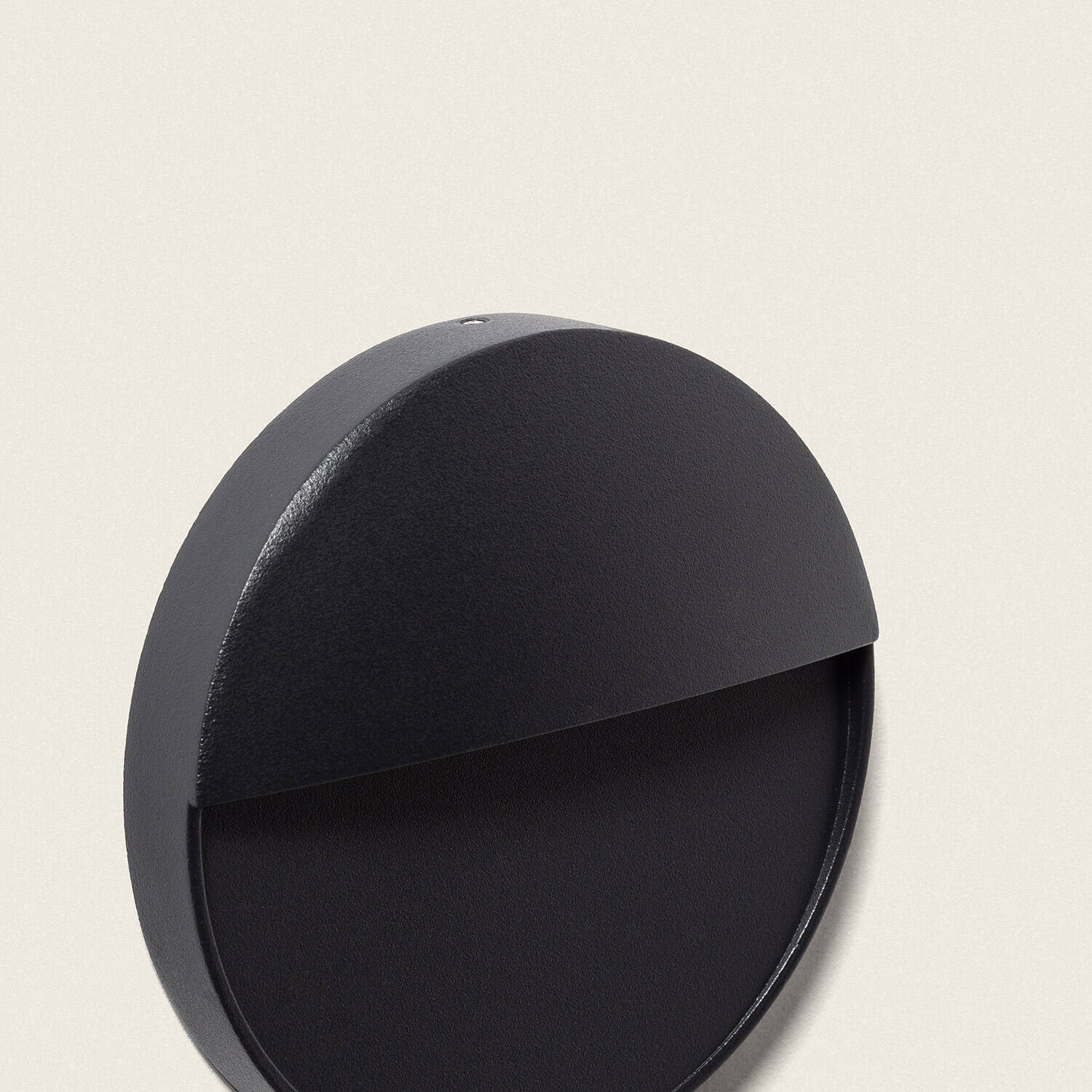 Son profil saillie rond, avec un diamètre de 110 mm et une faible profondeur de 25 mm, s’intègre discrètement aux façades contemporaines. Le noir mat souligne les lignes sobres et permet une installation harmonieuse sur murs en béton, enduit ou panneaux sandwich.