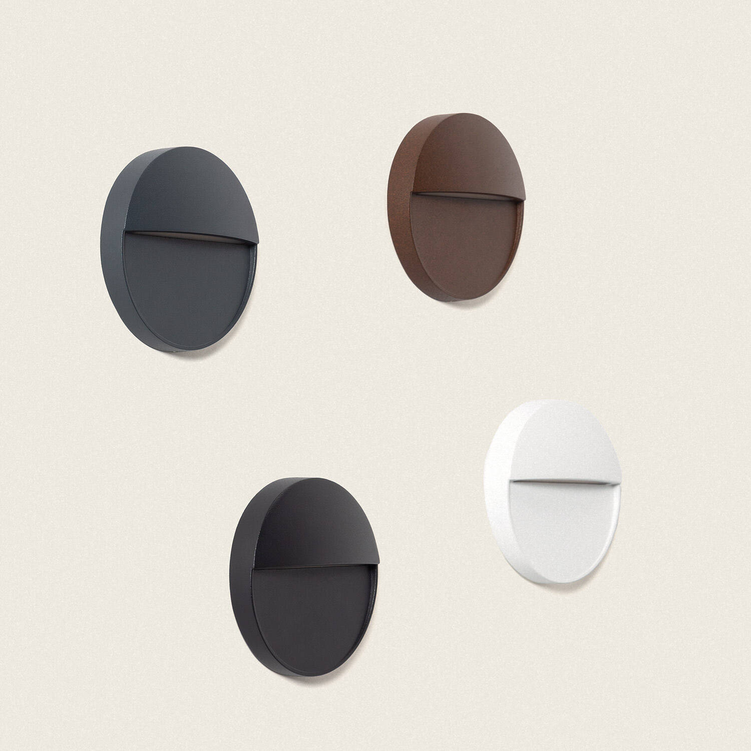 Avec son diamètre de 110 mm et sa faible saillie de 25 mm, cette applique extérieure s’intègre avec subtilité à l’architecture. Sa finition brun, sobre et contemporaine, souligne les murs sans les surcharger et convient aussi bien aux environnements résidentiels qu’aux projets plus exigeants.