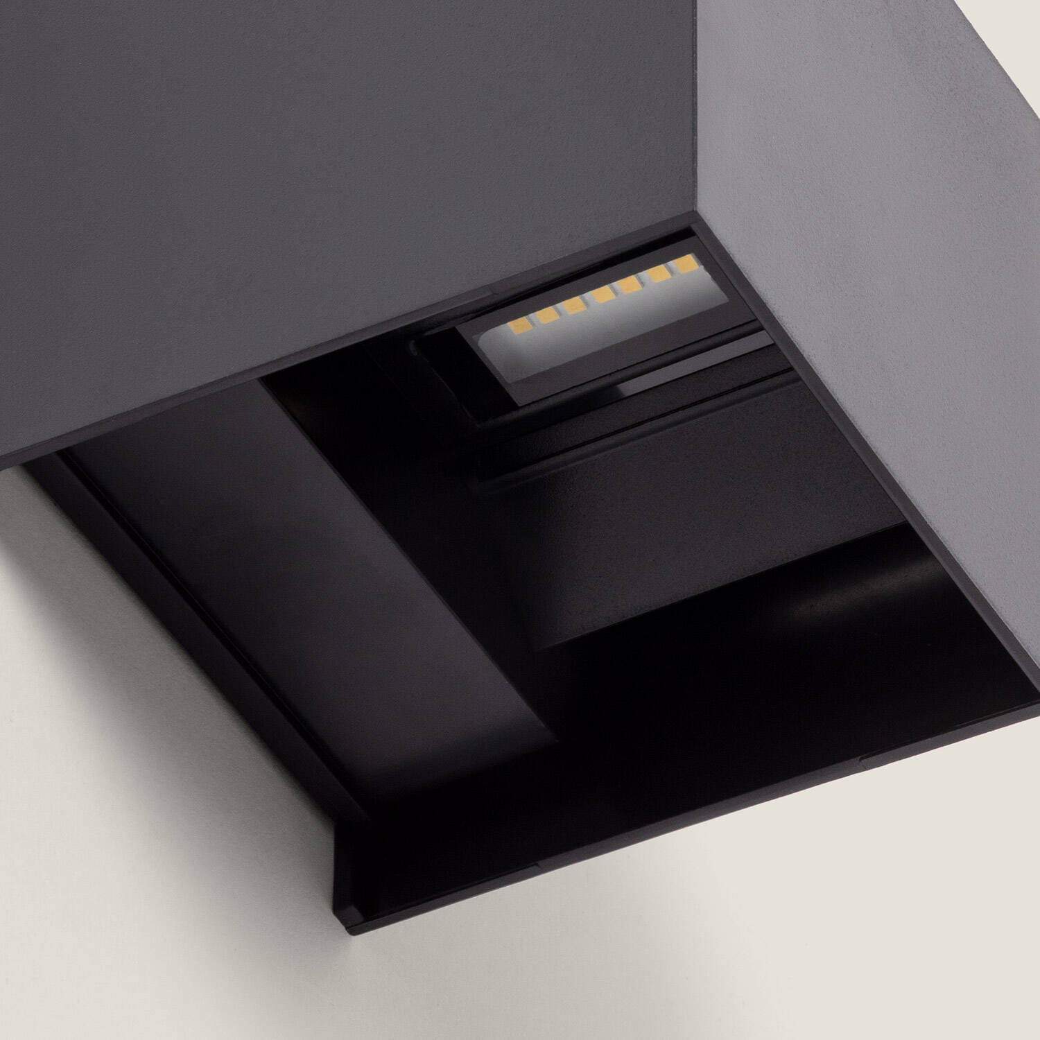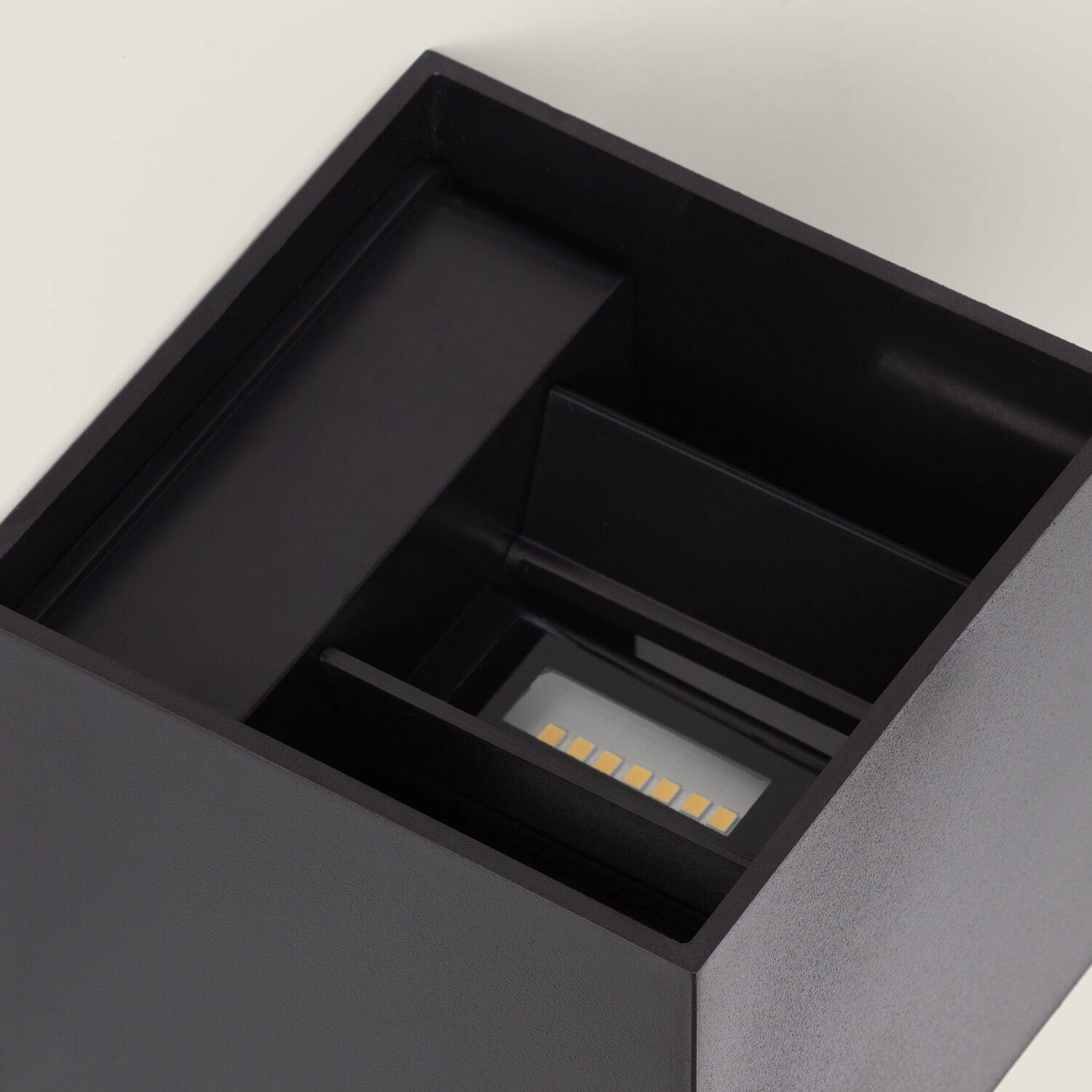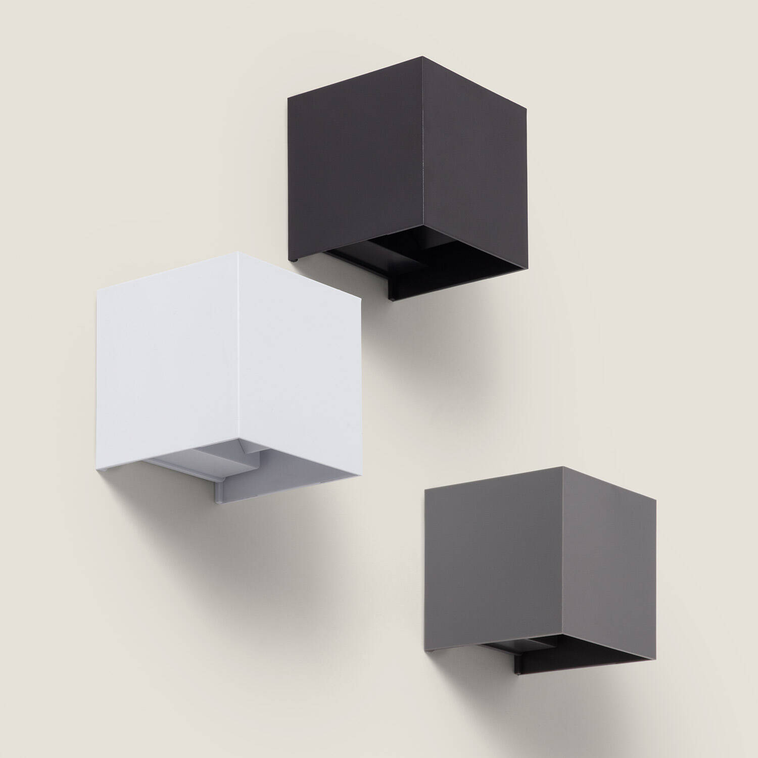 L'applique délivre 600 lm pour 6 W en blanc chaud 2700 K avec un indice de rendu colorimétrique IRC 80, offrant une lumière chaleureuse et fidèle. Le design up & down crée un double faisceau décoratif au‑dessus et en dessous du cube, idéal pour valoriser façades, entrées et terrasses.