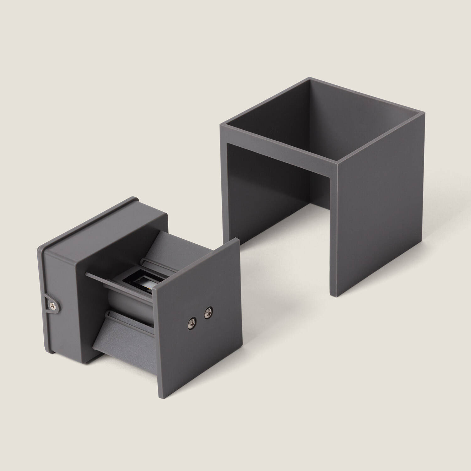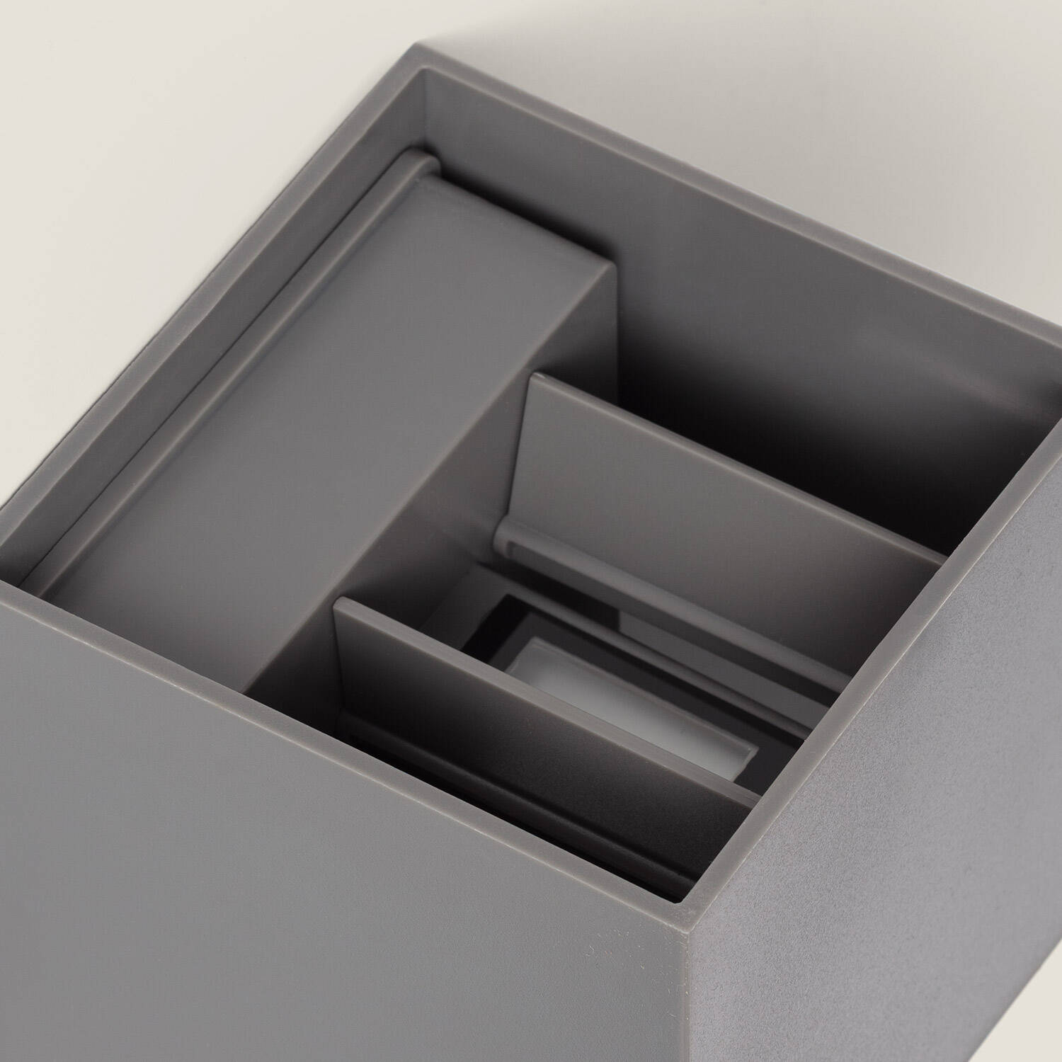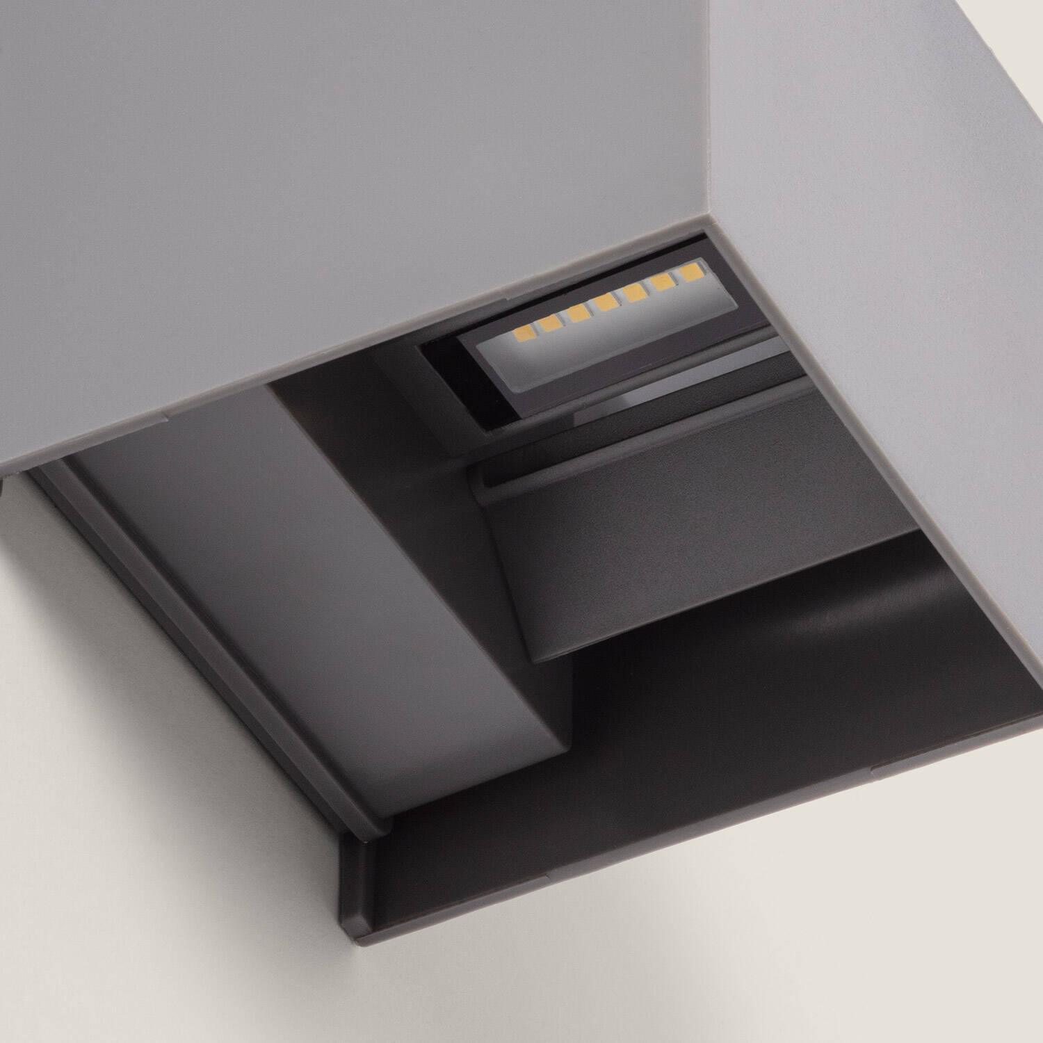 L'applique délivre 600 lm pour 6 W en blanc chaud 2700 K avec un indice de rendu colorimétrique IRC 80, offrant une lumière chaleureuse et fidèle. Le design up & down crée un double faisceau décoratif au‑dessus et en dessous du cube, idéal pour valoriser façades, entrées et terrasses.