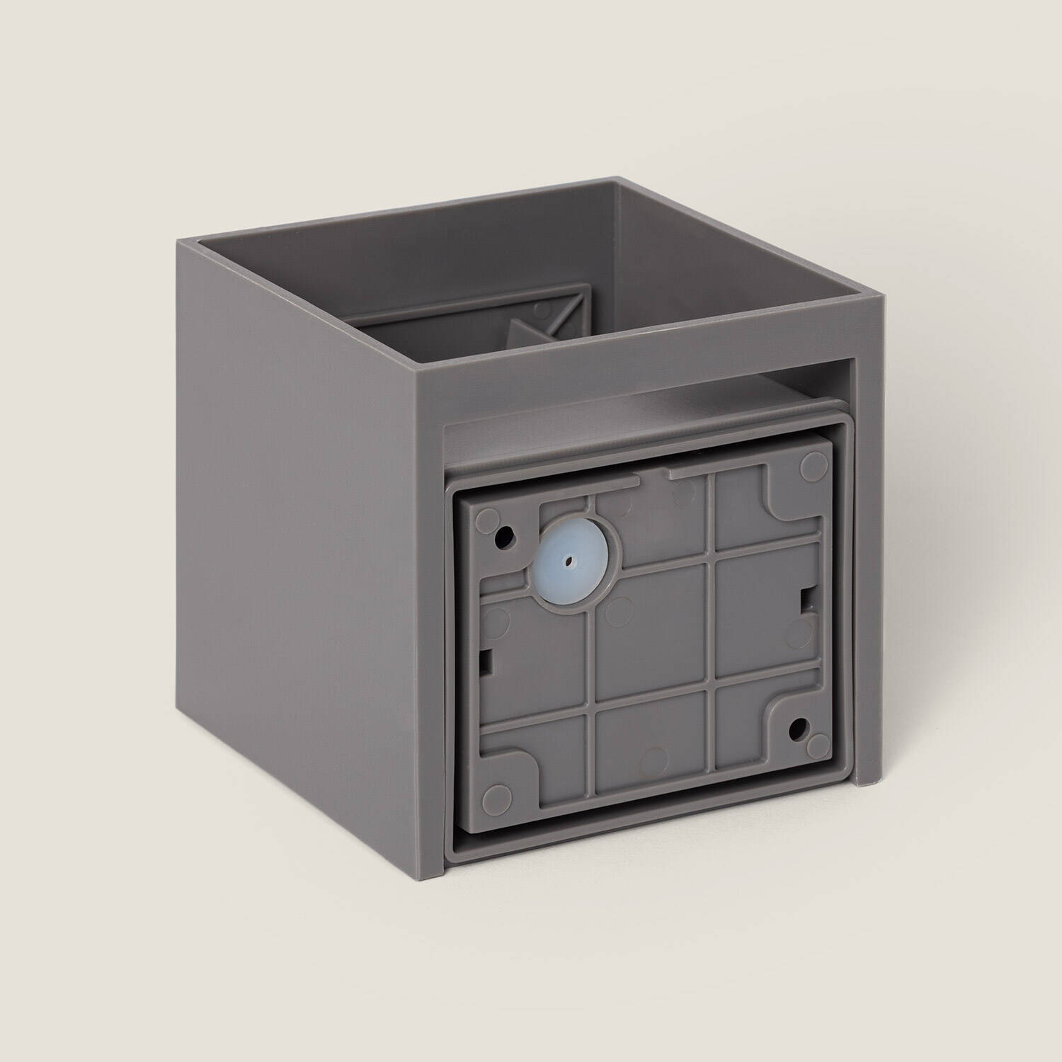 Le boîtier compact de 100 mm en polycarbonate gris clair propose une silhouette épurée, idéale pour intégration discrète sur murs intérieurs et extérieurs. Sa finition sobre rehausse les lignes contemporaines des bâtiments tout en résistant aux conditions climatiques pour un rendu soigné et constant.