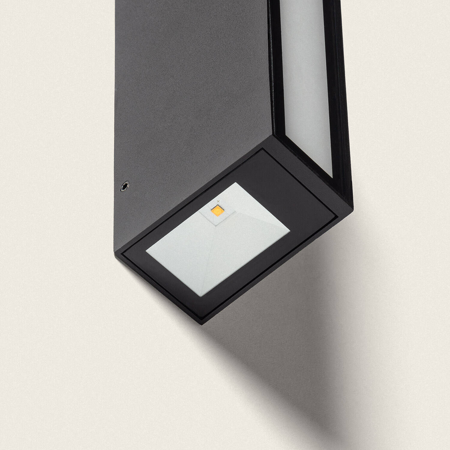 Ses dimensions réduites (165 mm × 45 mm × 75 mm) et sa finition noir mat permettent une intégration discrète sur parements contemporains. Sa silhouette rectiligne privilégie l’harmonie architecturale et facilite les alignements linéaires sans altérer l’esthétique des volumes extérieurs.