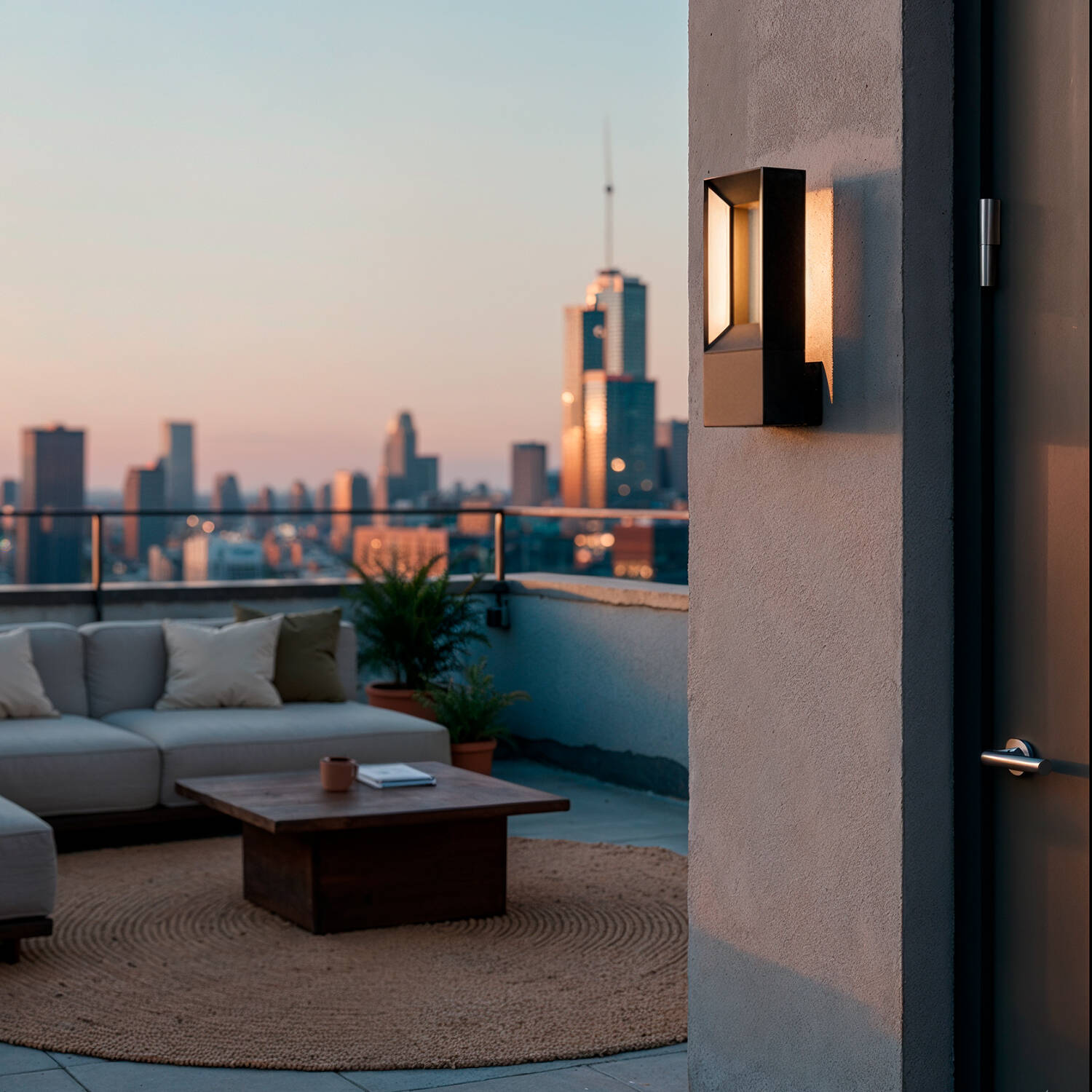 La silhouette rectangulaire et les lignes nettes de cette applique créent un point focal moderne sur toute façade. La finition noire mate en aluminium apporte un rendu premium, résistant aux UV et à la corrosion, pour un rendu esthétique durable qui s’harmonise avec les architectures contemporaines.