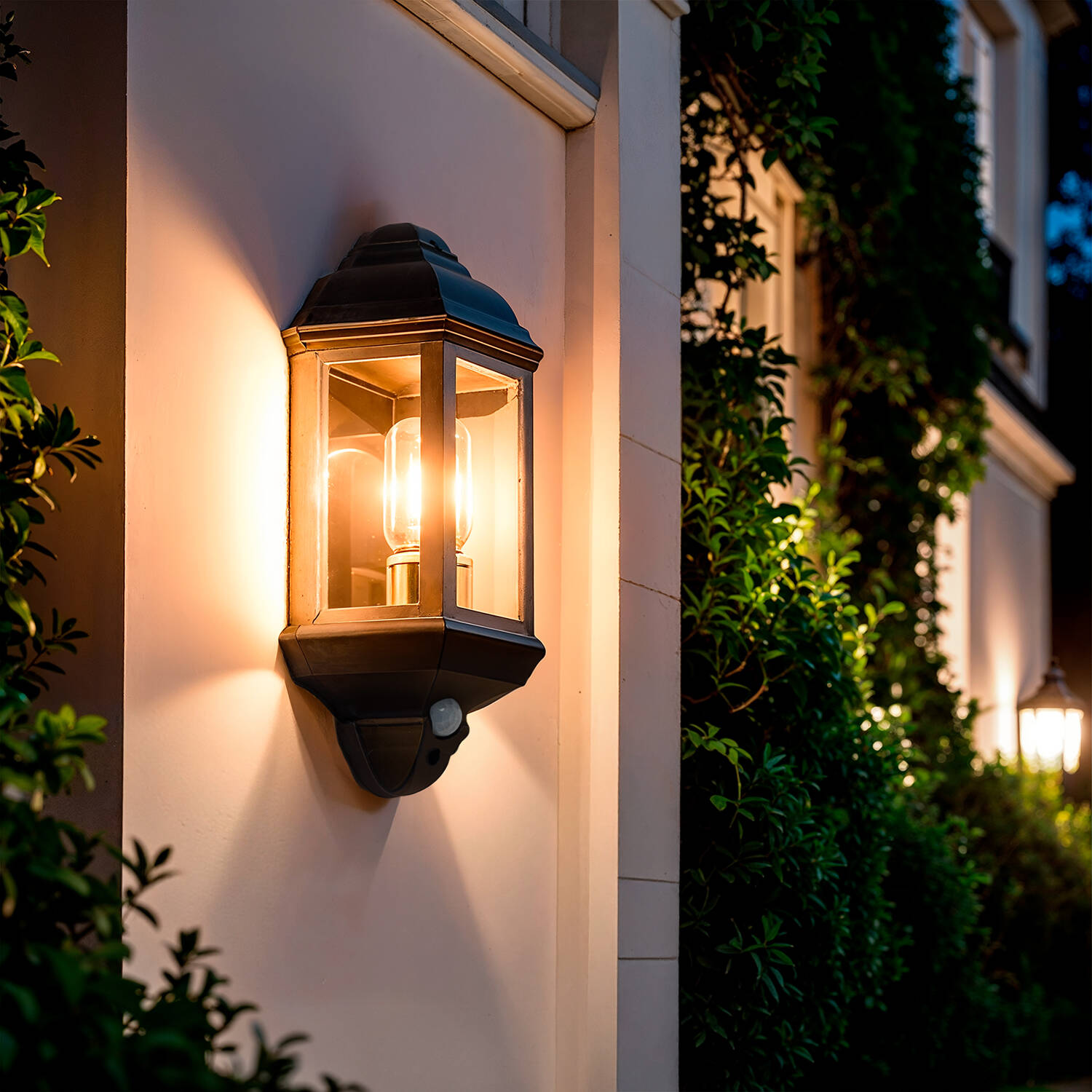 L’applique murale extérieure Newquay avec capteur crépusculaire combine un style lanterne noir intemporel et un allumage automatique à la tombée du jour. Idéale pour façade, entrée ou passage, elle résiste aux éclaboussures grâce à sa protection IP44 et fonctionne avec 1 ampoule E27 non incluse.