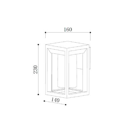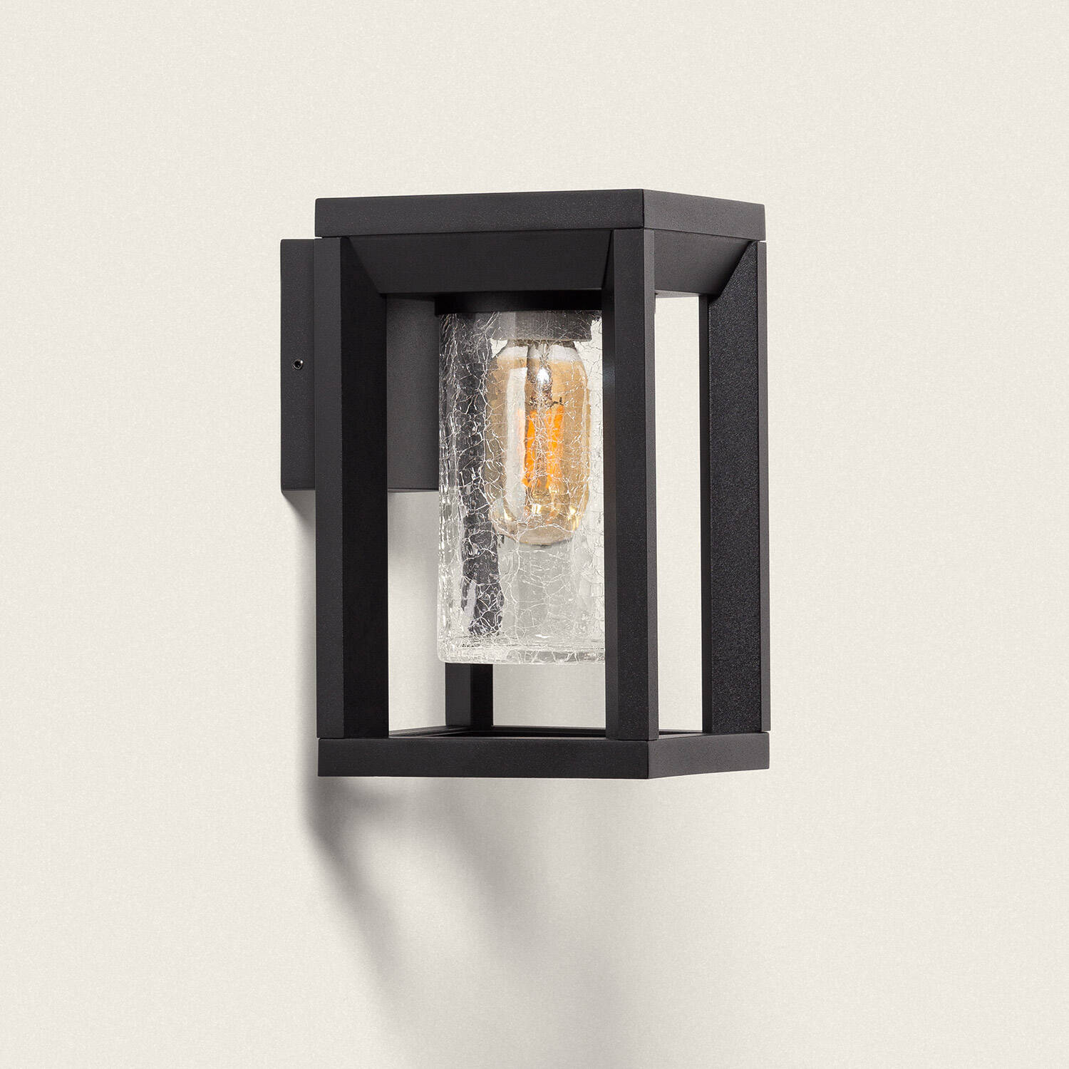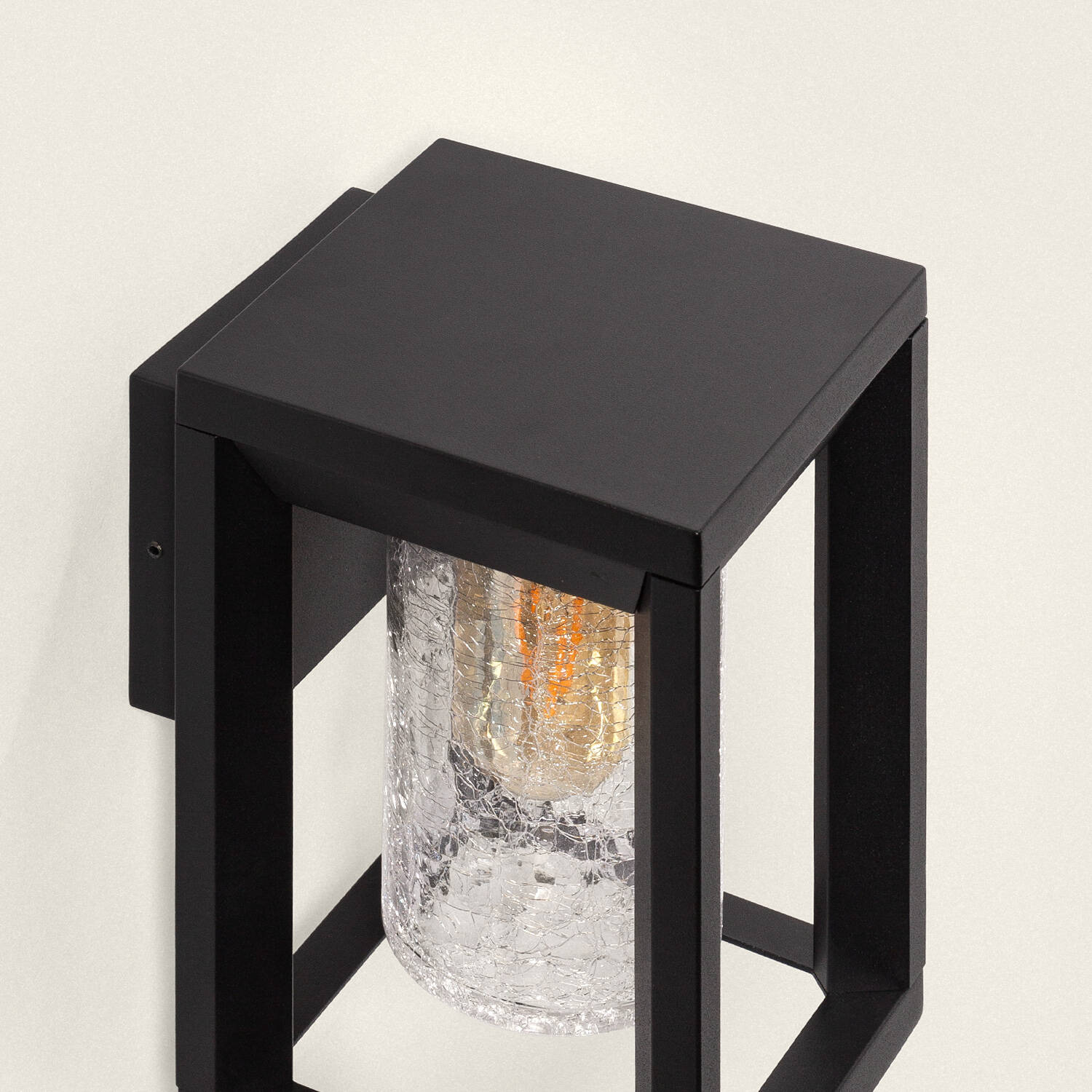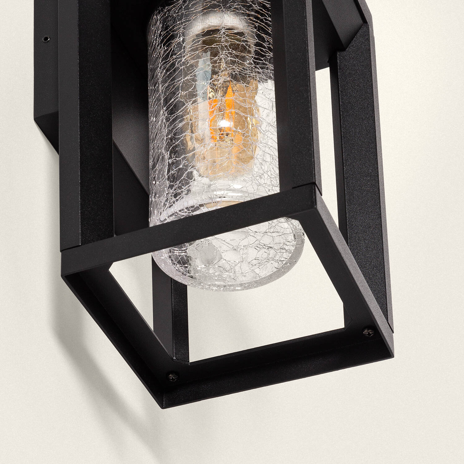 Le design géométrique à armature ouverte met en scène un diffuseur cylindrique en verre craquelé, créant un jeu de lumière délicat et raffiné. L’applique apporte une présence contemporaine sobre qui valorise les textures et volumes de vos façades sans les surcharger visuellement.