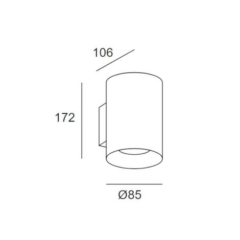 Un corps en aluminium et un diffuseur en verre signent une esthétique sobre et haut de gamme. La teinte noire mate et les proportions compactes (106 × 172 mm, diamètre 85 mm) confèrent à cette applique une présence élégante, discrète et facile à intégrer à tout projet architectural.