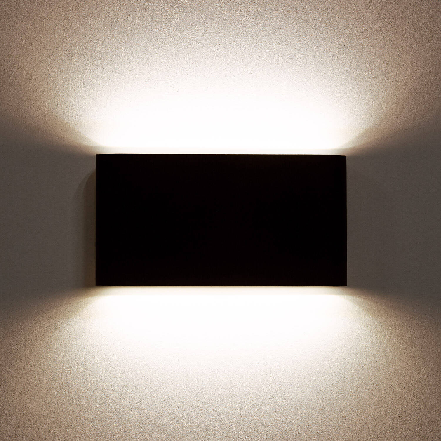 Applique Murale LED Extérieure 12W Éclairage Double Face Rectangulaire Noire Luming offre un éclairage décoratif et fonctionnel. Sa silhouette rectangulaire noire et son éclairage up & down diffusent une lumière blanc chaud 2700K idéale pour valoriser façades, allées et terrasses avec raffinement et efficacité énergétique.