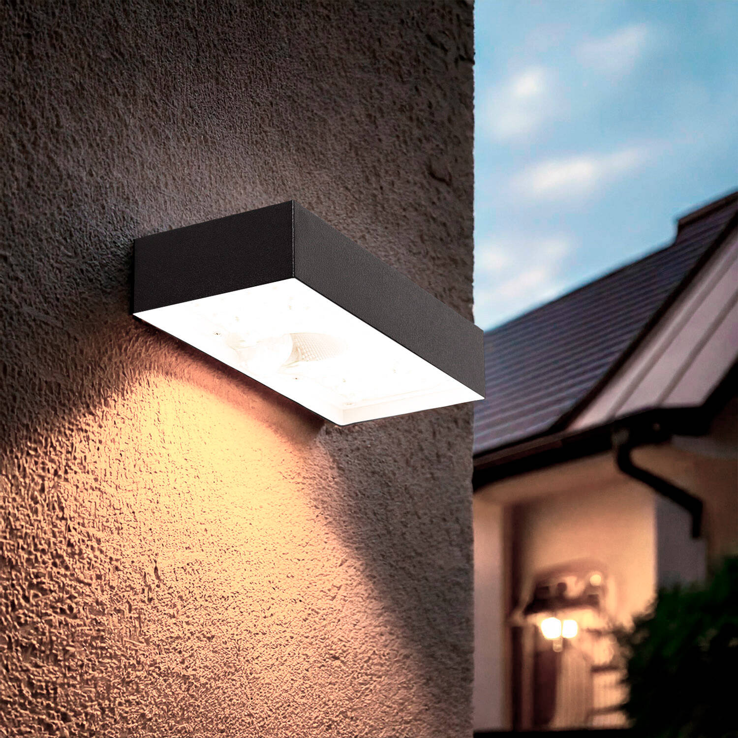 Son boîtier noir en ABS et PC combine résistance aux UV et tenue au feu, offrant un rendu esthétique discret. Les finitions soignées et le panneau solaire en verre trempé garantissent une intégration élégante sur façades contemporaines ou classiques, pour un rendu premium.