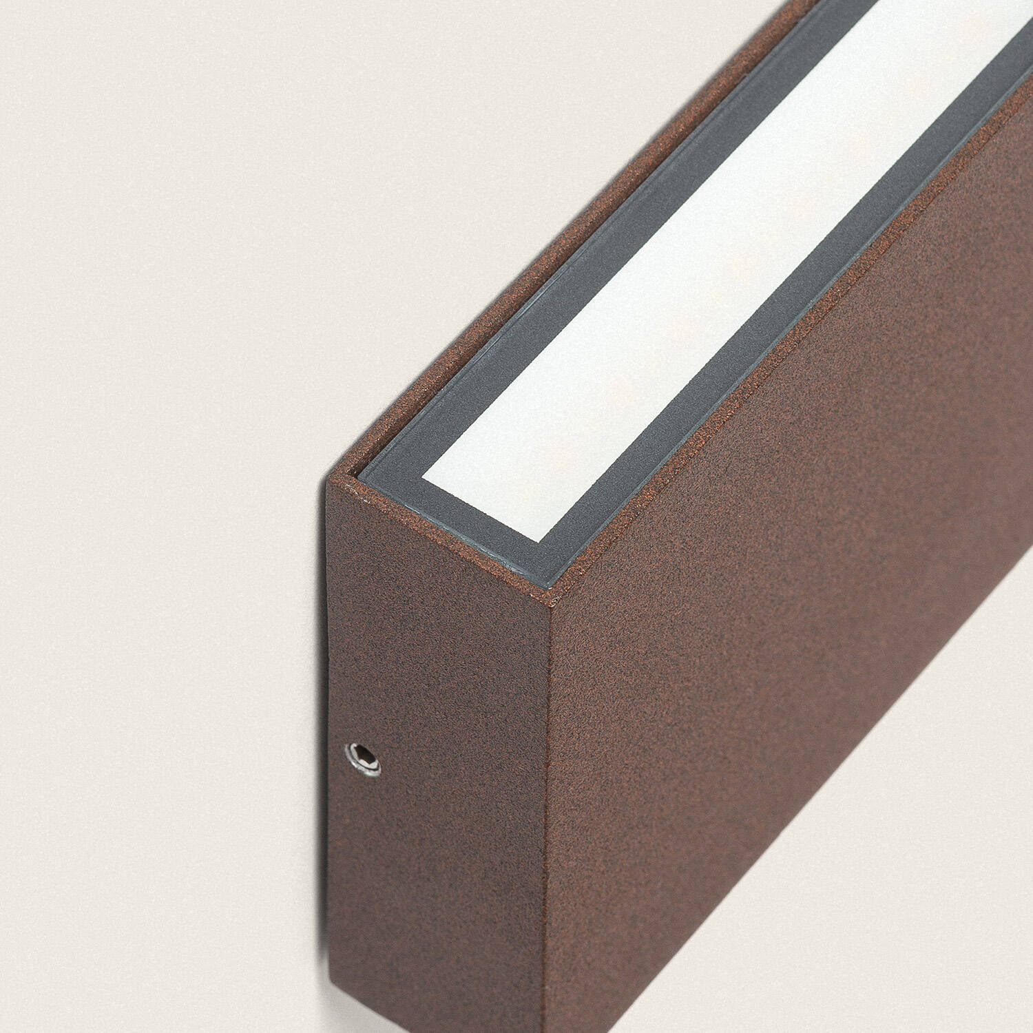 Applique Murale LED Extérieure Brooky S en finition rouille combine esthétique minimaliste et robustesse pour créer un éclairage extérieur raffiné. Sa double émission lumineuse et son réglage CCT permettent d’adapter l’ambiance tandis que l’aluminium garantit une tenue durable face aux intempéries.