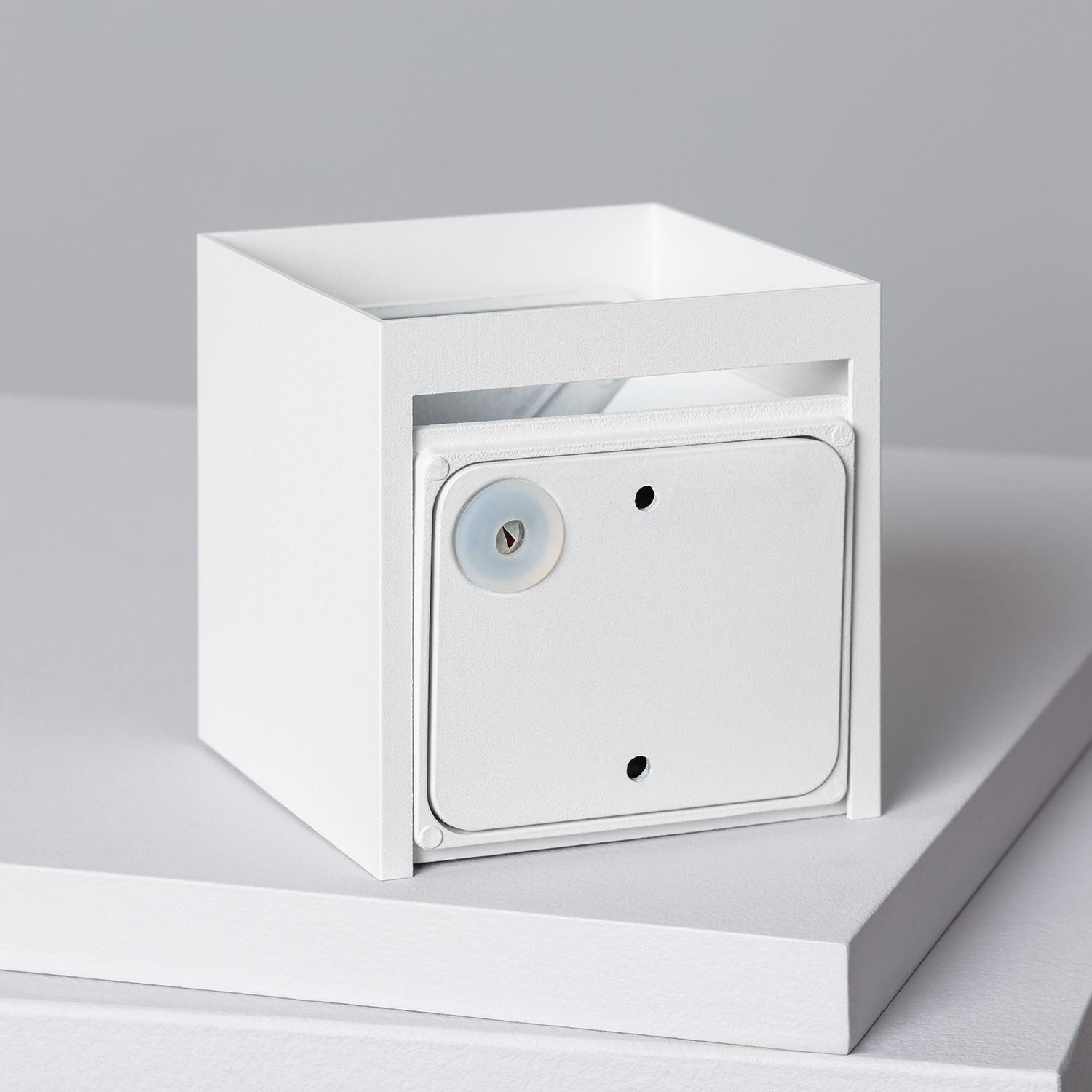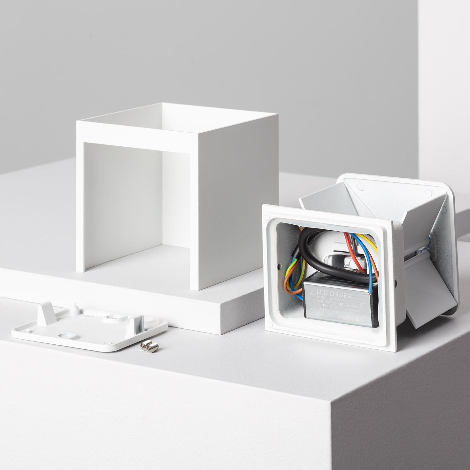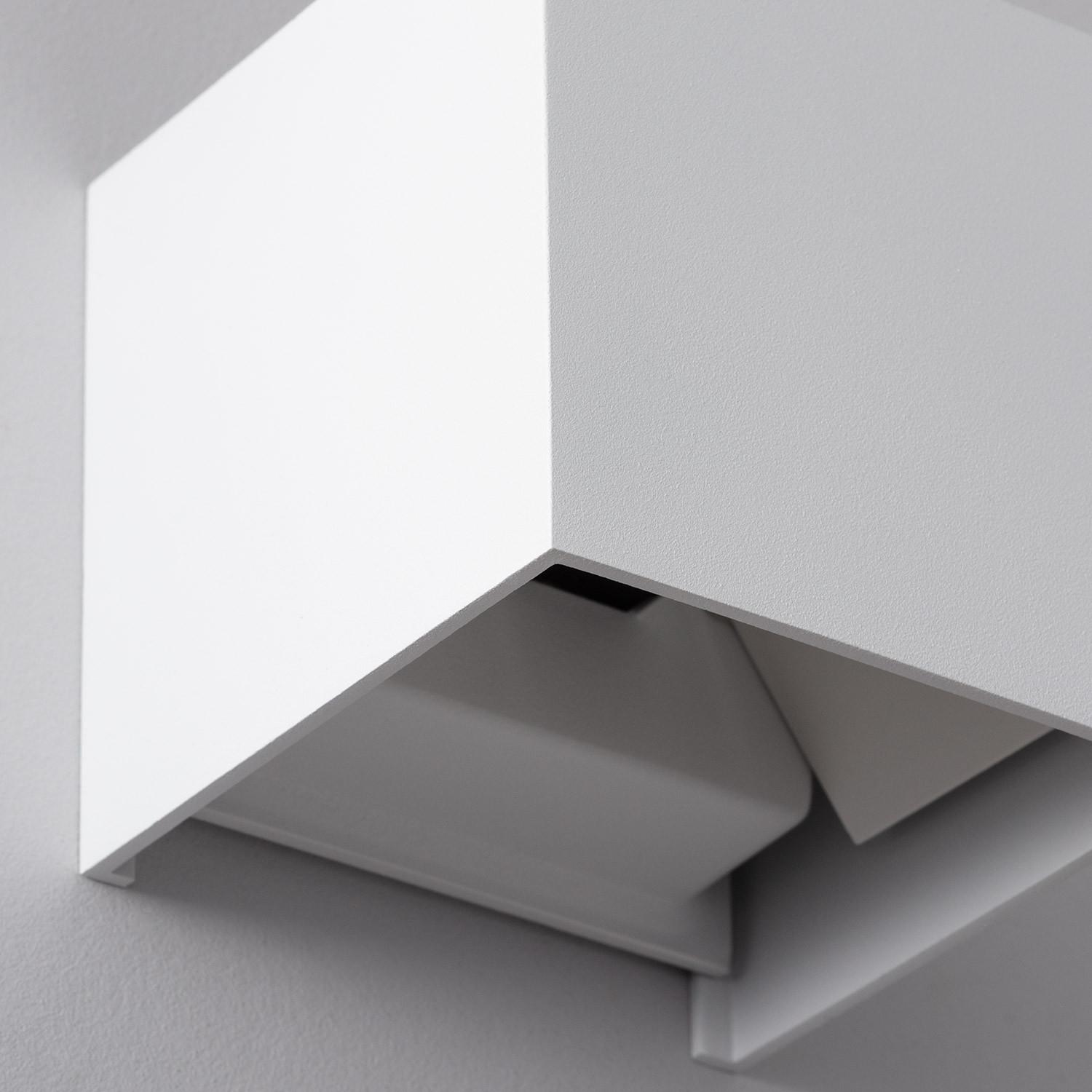 Le cube compact de 100 mm s’intègre aisément aux façades contemporaines. Comme applique murale, sa carrosserie en aluminium peint blanc combine robustesse et élégance, offrant un rendu discret tout en résistant aux contraintes extérieures et valorisant projets modernes ou rénovations sobres.