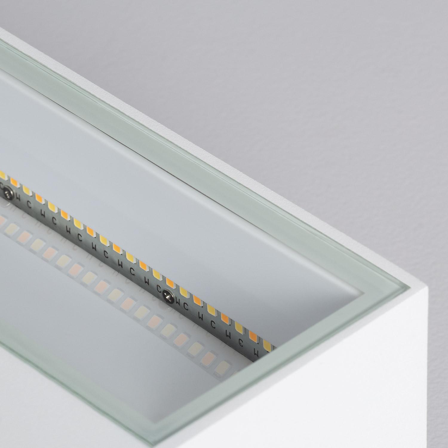 Applique Murale LED Extérieure Aluminium Gropius 18W : élégance et polyvalence pour illuminer façades, terrasses et entrées. Sa conception en aluminium blanc propose un éclairage up & down double face, avec température de couleur CCT sélectionnable pour adapter l’ambiance selon l’heure et l’usage.