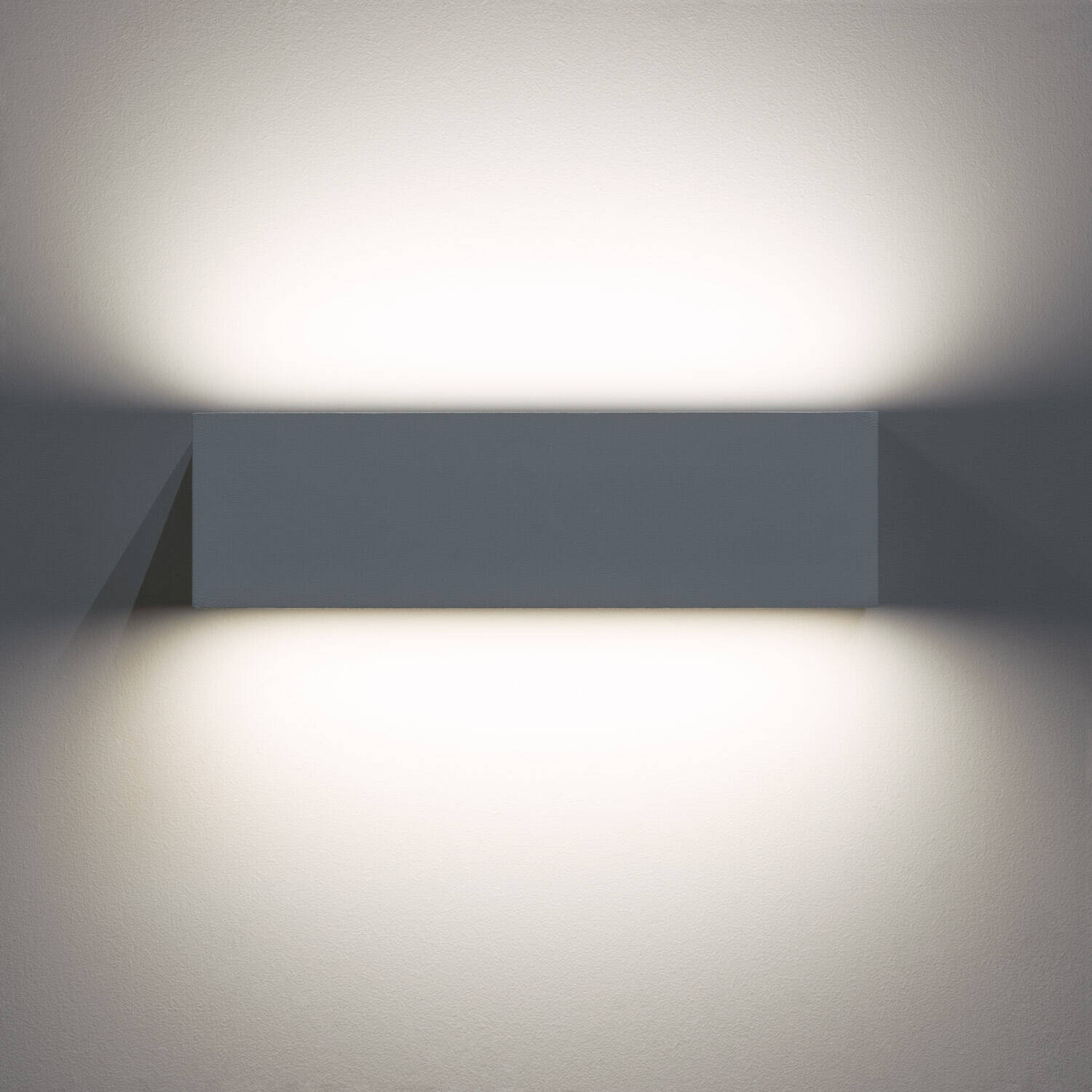 La Lena 10W offre un éclairage rectangulaire double face qui projette de la lumière vers le haut et vers le bas pour un wash mural élégant, idéal pour mettre en valeur façades et murs extérieurs. L'éclairage est en blanc neutre 4000K avec un IRC de 80 pour un rendu colorimétrique naturel, et un angle d'ouverture large de 120º.