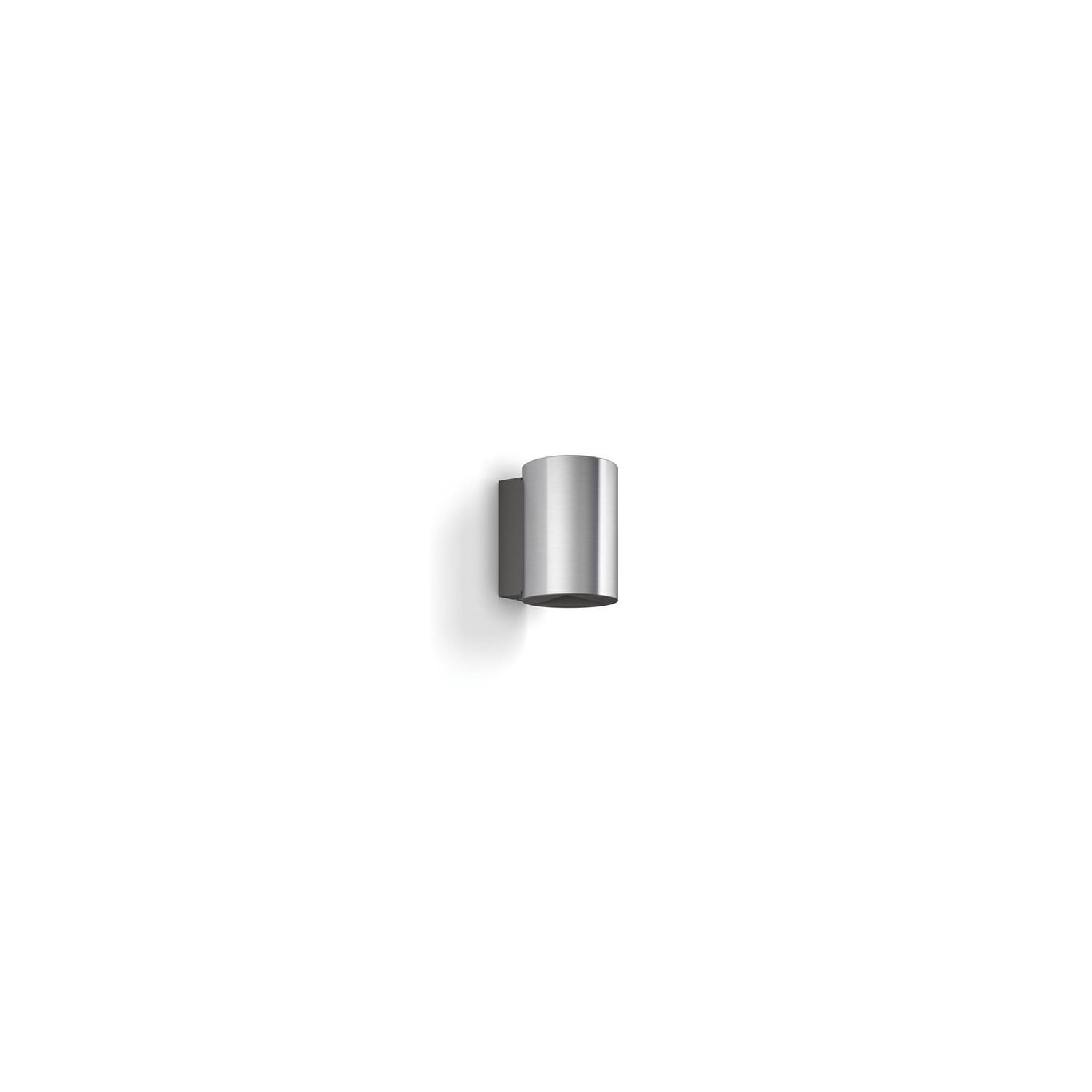 La finition argentée en acier inoxydable confère à cette applique un caractère contemporain et résistant aux éléments. Sa silhouette cylindrique discrète s’intègre aux façades modernes comme aux décors plus classiques, apportant une touche haut de gamme sans détourner l’attention des volumes ou des aménagements extérieurs.
