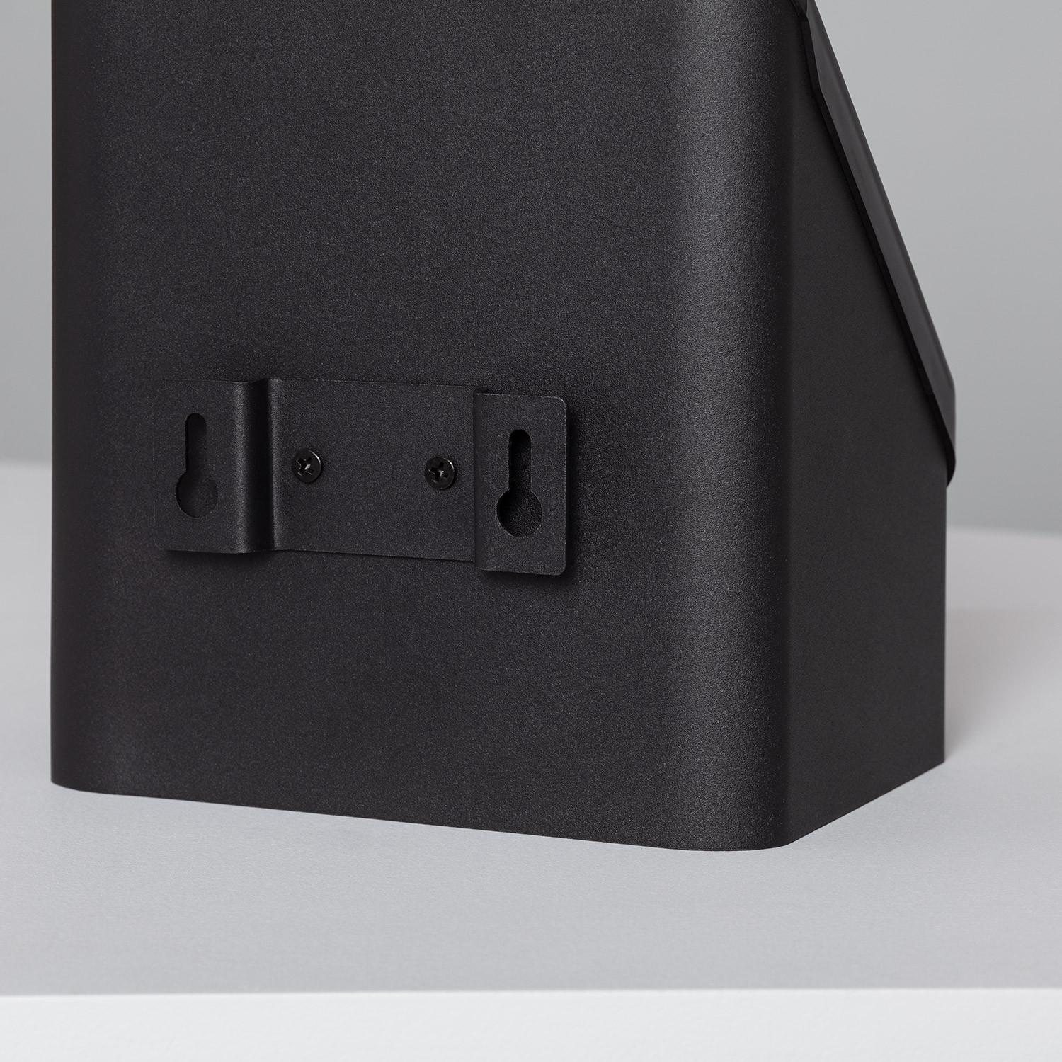 L'applique est conçue pour une installation murale en surface et l'arrière montre une platine préformée pour un montage par accroche. Aucun câble électrique n'est nécessaire grâce à la charge solaire. Prévoyez des vis et chevilles adaptées au matériau du mur pour assurer une fixation solide. Si vous avez un doute, faites appel à un installateur professionnel.