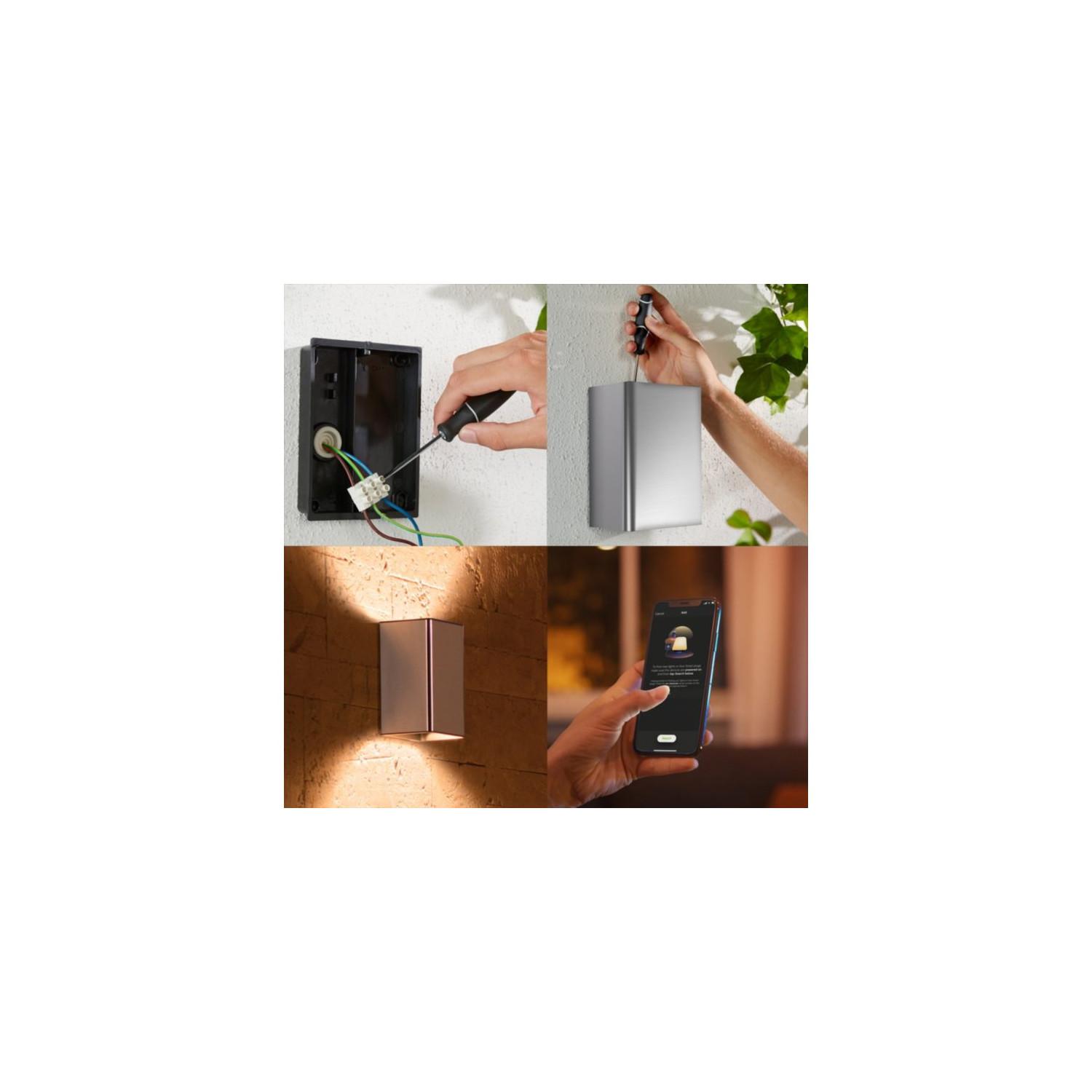 Profitez d’un éclairage RGBW riche et précis pour adapter la couleur et la température selon chaque moment. La technologie Philips Hue offre un rendu lumineux de qualité, modulable via application ou commande vocale, pour sublimer terrasses, murs et circulations extérieures avec élégance.