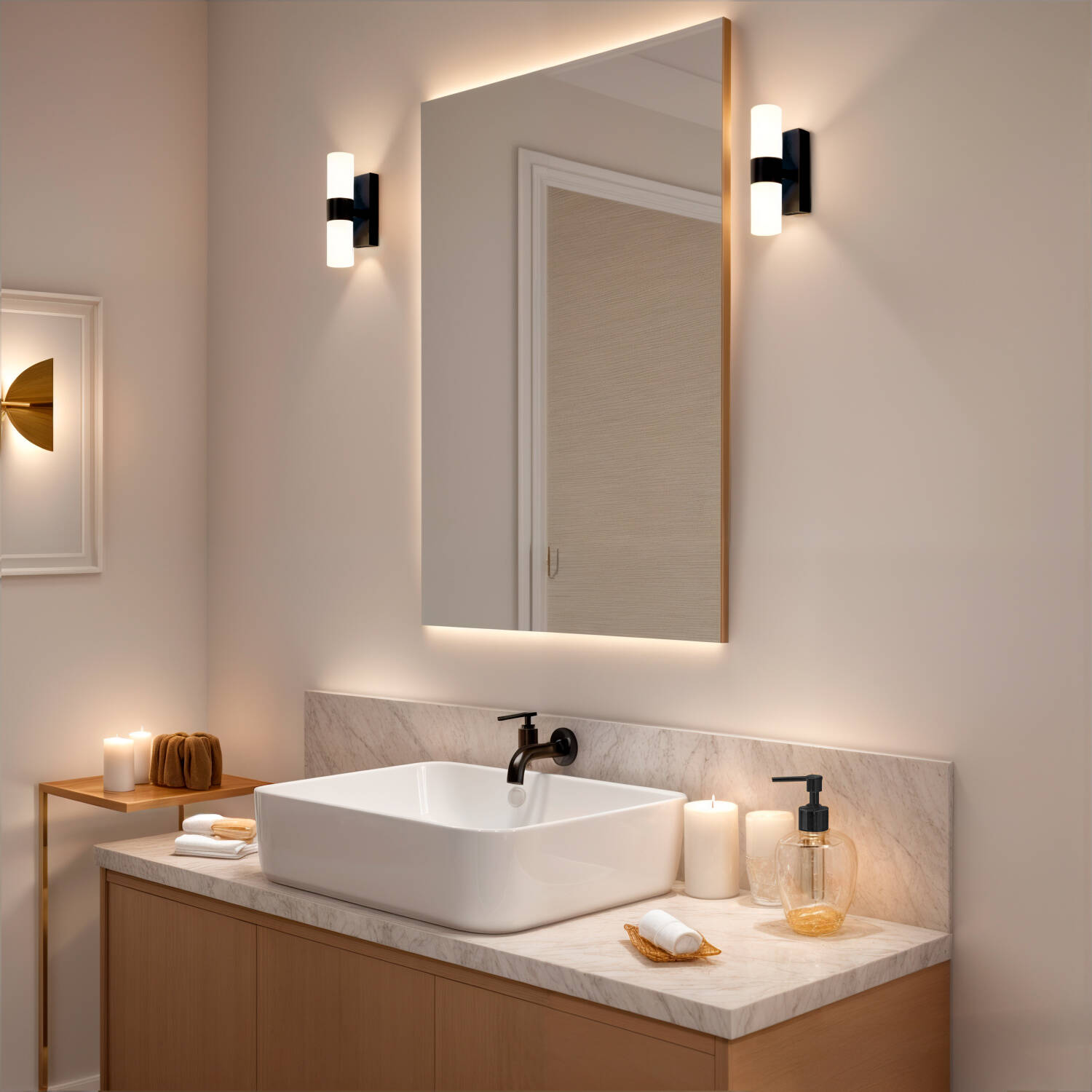Dotée d’un rendu up & down, l’applique diffuse une lumière blanche neutre 4000K, offrant visibilité et ambiance sans éblouissement. Le flux lumineux homogène minimise les ombres et sublime les surfaces, idéal devant un miroir, dans un couloir ou pour valoriser une façade extérieure.