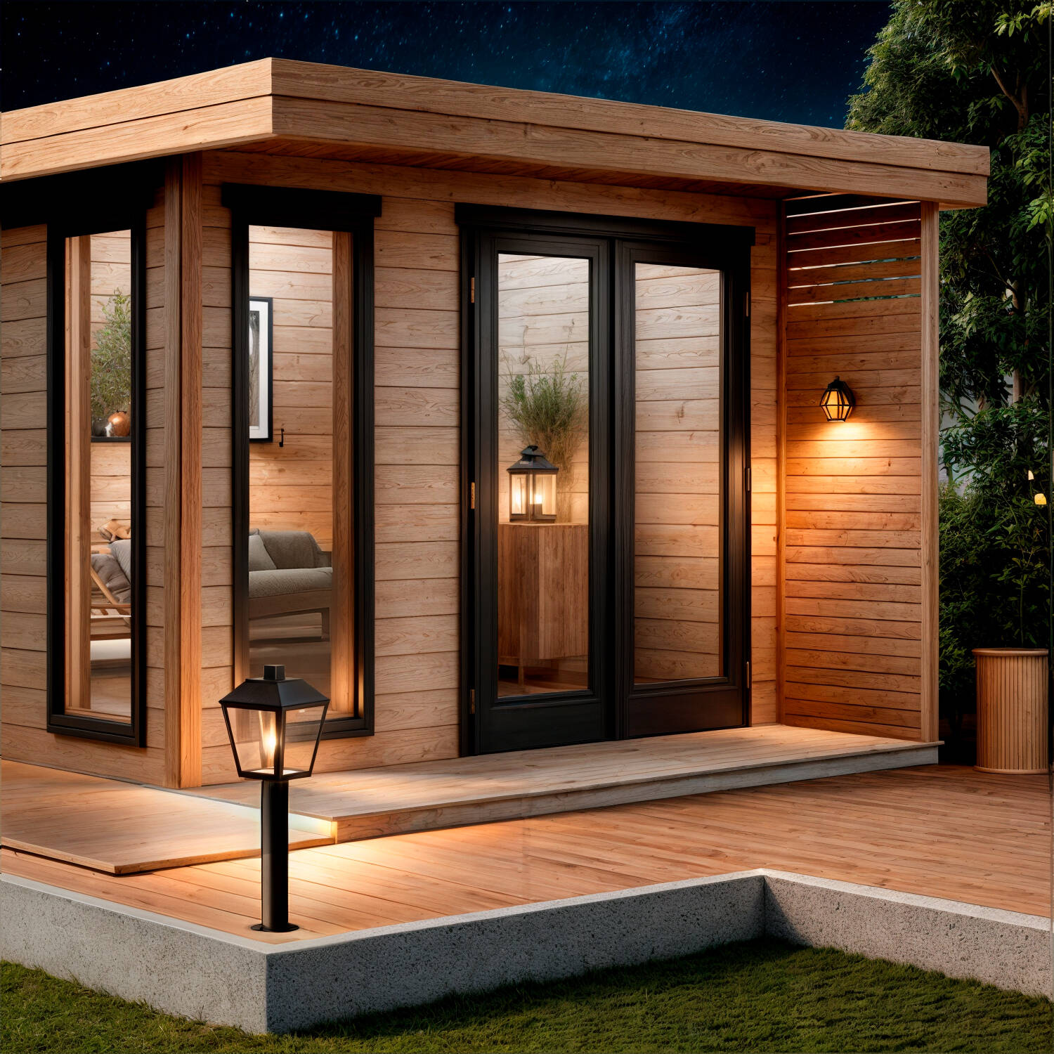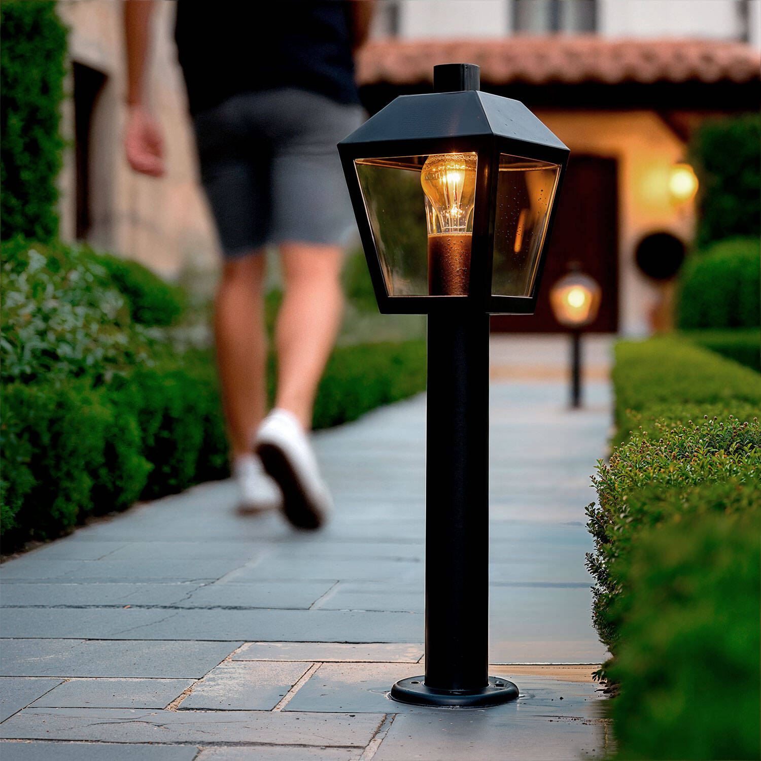 Son style contemporain se fond dans tout environnement extérieur, apportant une touche raffinée sans dominer l’espace. Le noir sobre et les faces vitrées valorisent la source lumineuse, créant un éclairage chaleureux et accueillant qui met en valeur allées, entrées et jardinières avec élégance.
