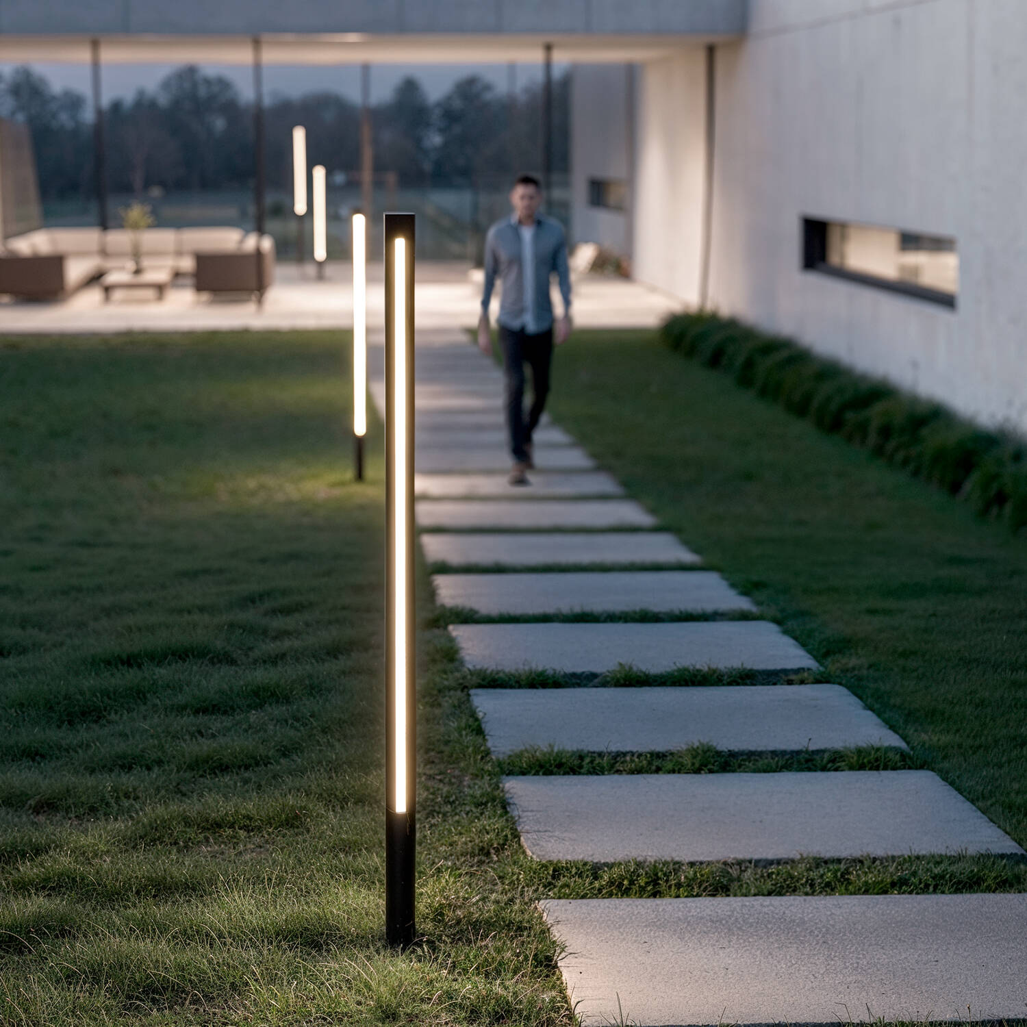 Avec son profil cylindrique fin de 25 mm et sa finition noir mat, cette balise allie discrétion et élégance contemporaine. Son esthétisme minimaliste s’intègre parfaitement aux aménagements modernes, apportant une touche raffinée sans alourdir la composition paysagère. Le diffuseur linéaire assure une lumière uniforme le long du mât.