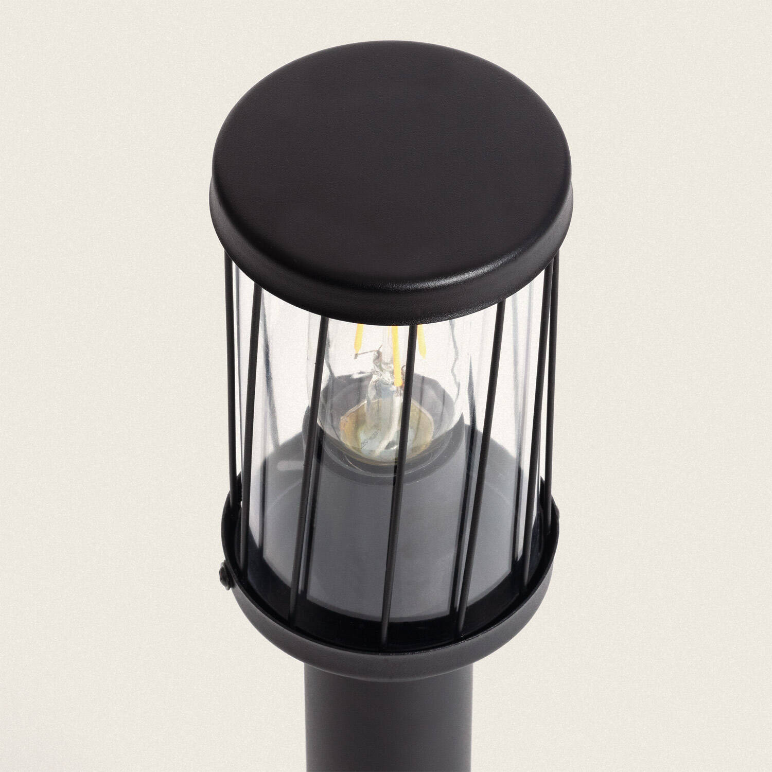Son esthétique cage métallique et l’optique transparente créent une silhouette vintage contemporaine qui valorise les espaces extérieurs. Avec son diamètre discret et sa hauteur de cinquante centimètres, cette balise apporte un accent décoratif sans envahir le paysage, préservant les lignes et le style de votre aménagement.