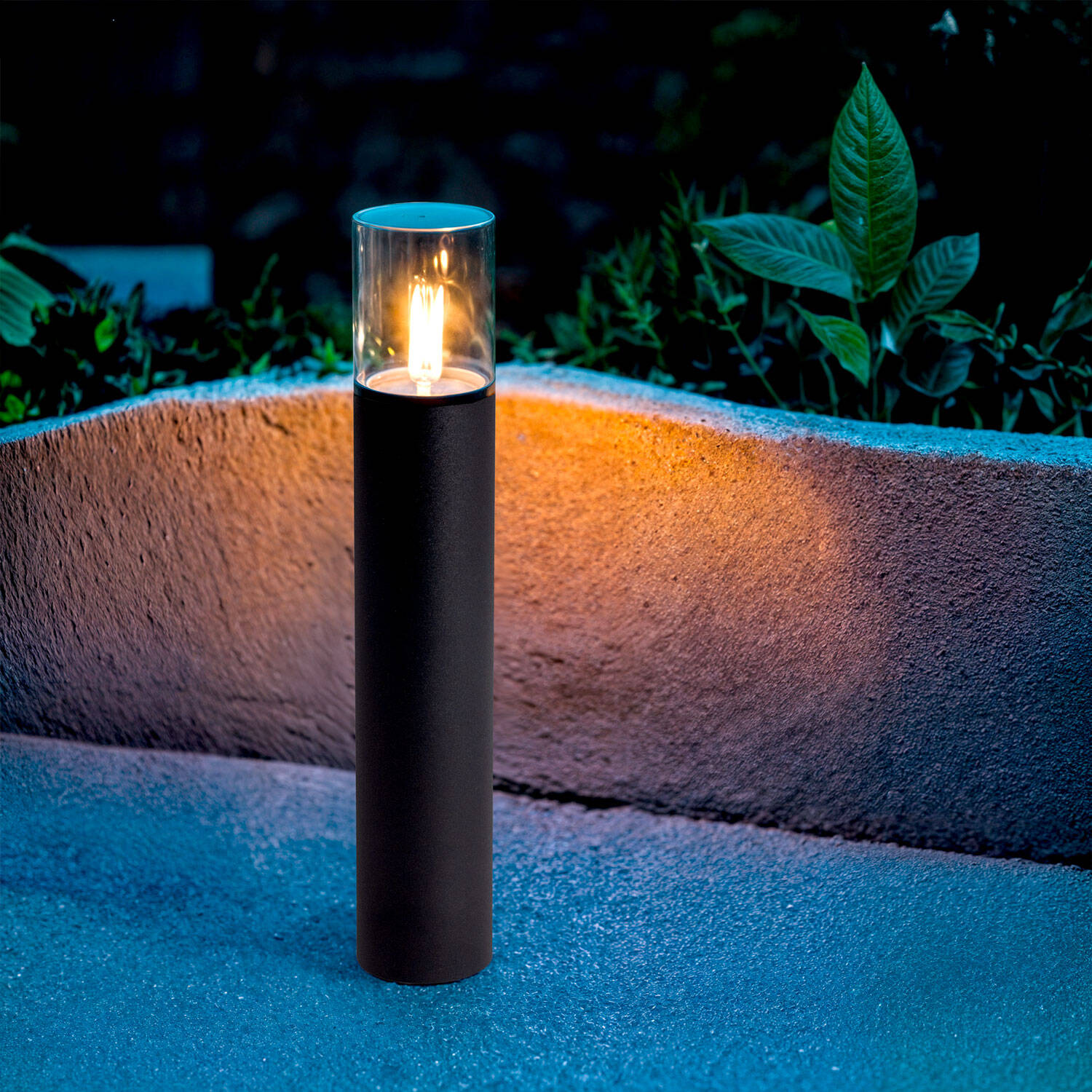 Son design cylindrique de 50 cm, couronné d’un globe translucide, fusionne un style vintage avec une ligne contemporaine. Le diamètre restreint permet une présence discrète le long d’une allée, tandis que la finition noir mat confère une allure premium et cohérente aux aménagements extérieurs soignés.