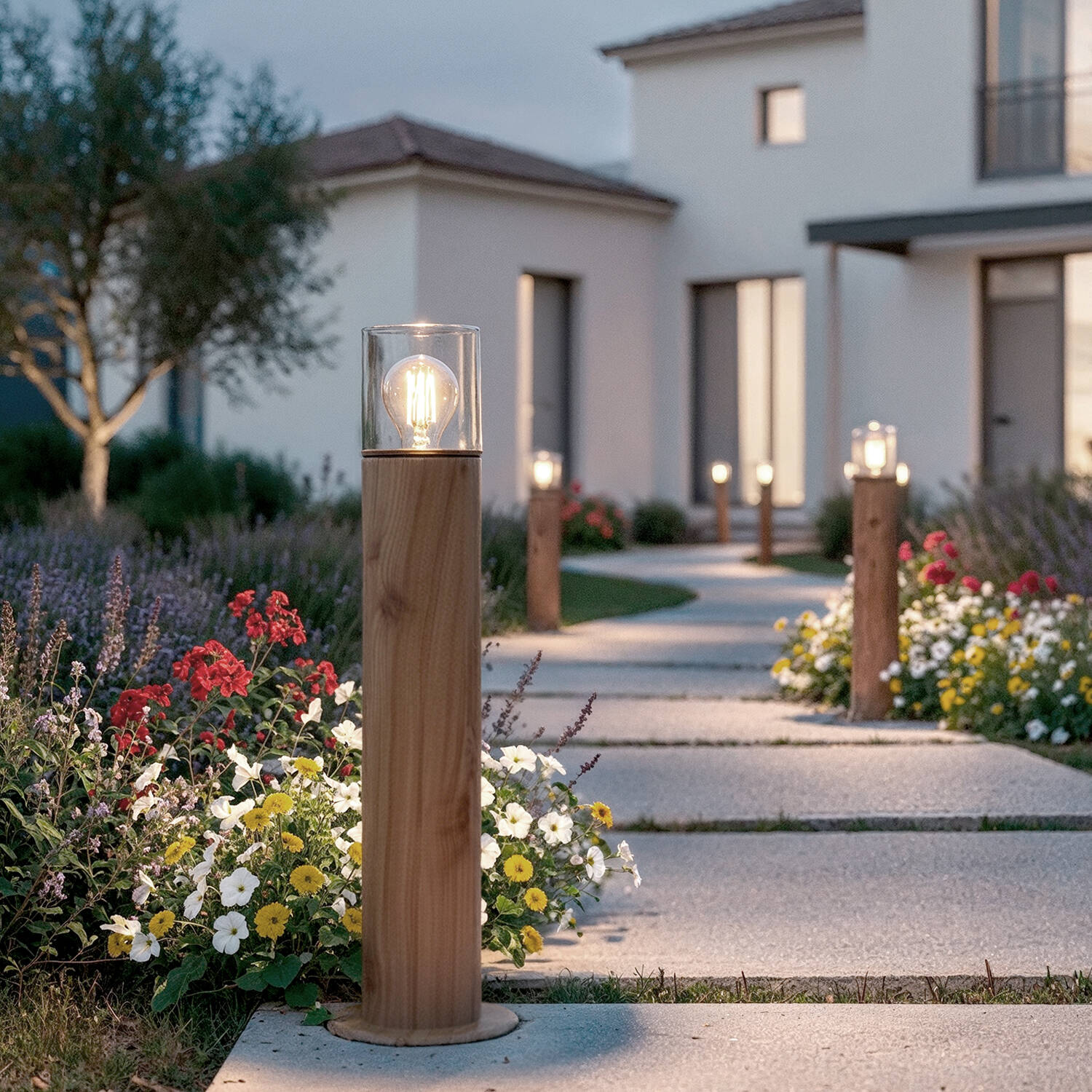 La balise extérieure en saillie sur pied 50 cm Emley est pensée pour éclairer avec justesse les allées, les abords de terrasse, les jardins et les entrées. Son format cylindrique, sa teinte brun clair et son diffuseur en verre créent une présence décorative sobre et raffinée.