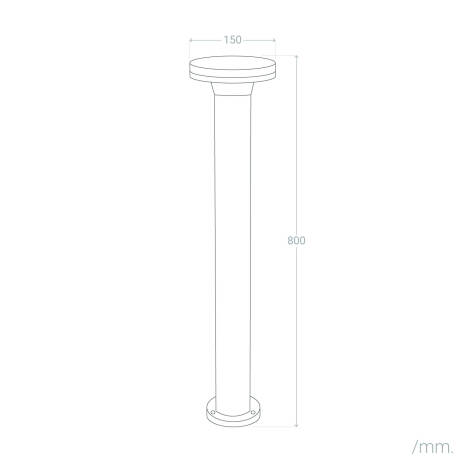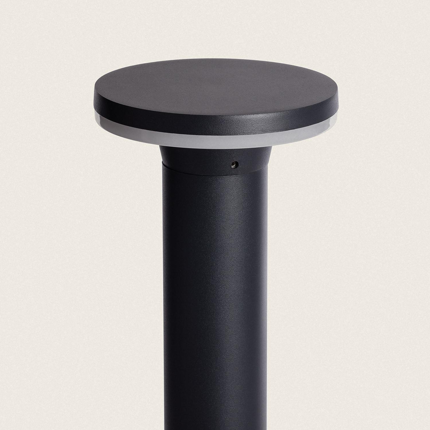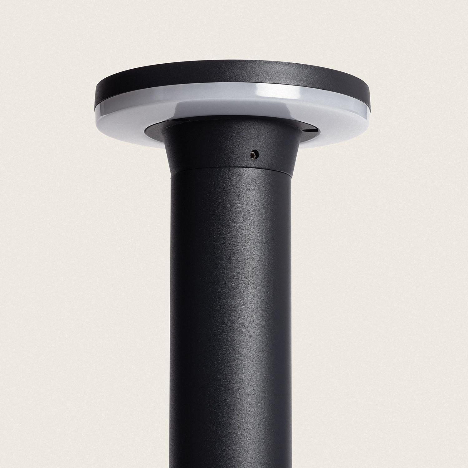 Son fût cylindrique en aluminium noir et sa surface plane supérieure apportent une silhouette contemporaine et discrète. Avec un diamètre contenu de 150 mm et une hauteur de 80 cm, la balise s’intègre harmonieusement aux aménagements paysagers et aux allées minimalistes.