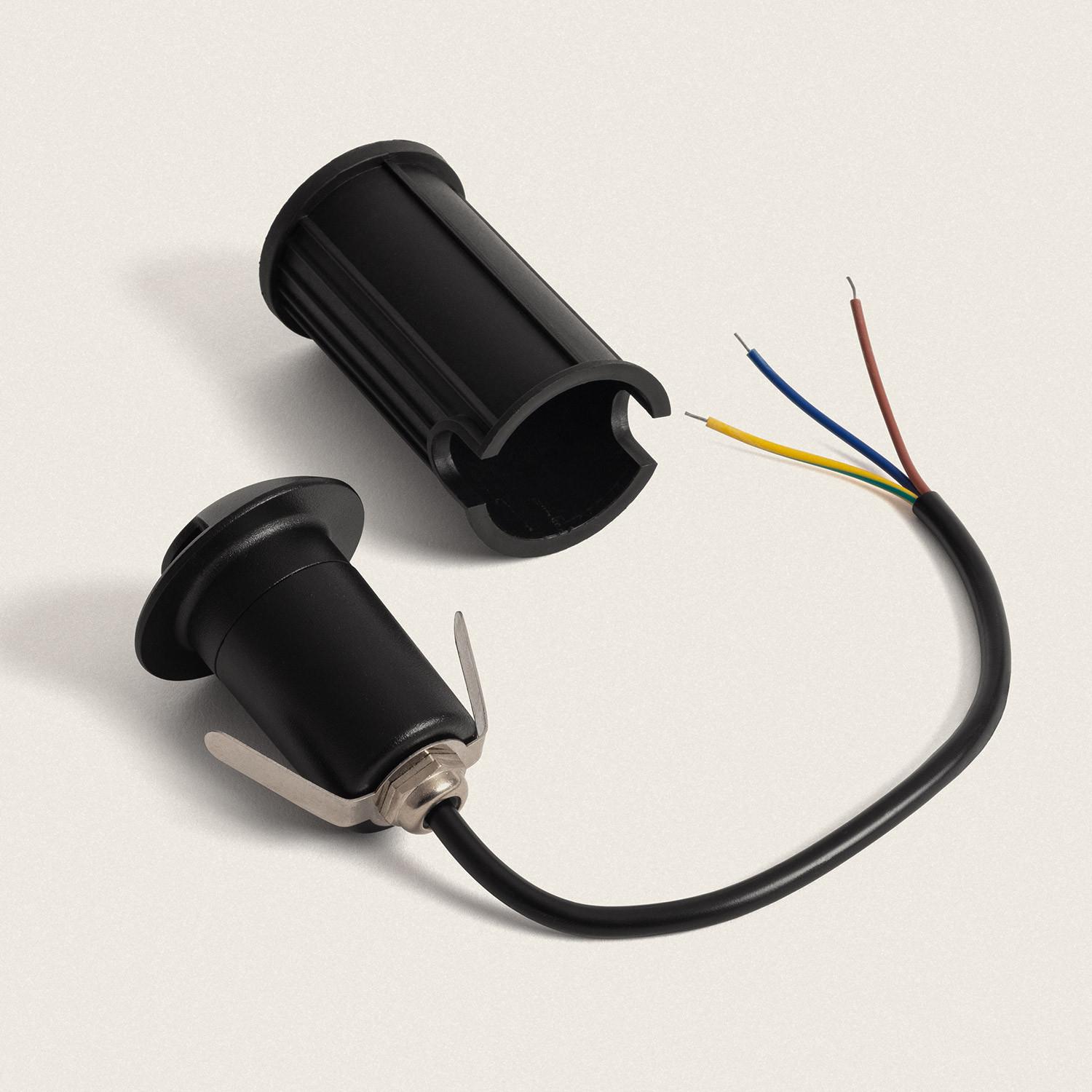 Son profil encastrable et son diamètre contenu assurent une intégration harmonieuse dans les allées, terrasses ou entrées. Le boîtier noir et la lentille basse en verre créent une finition discrète qui se fond dans l’architecture sans altérer l’esthétique ni la circulation au sol.