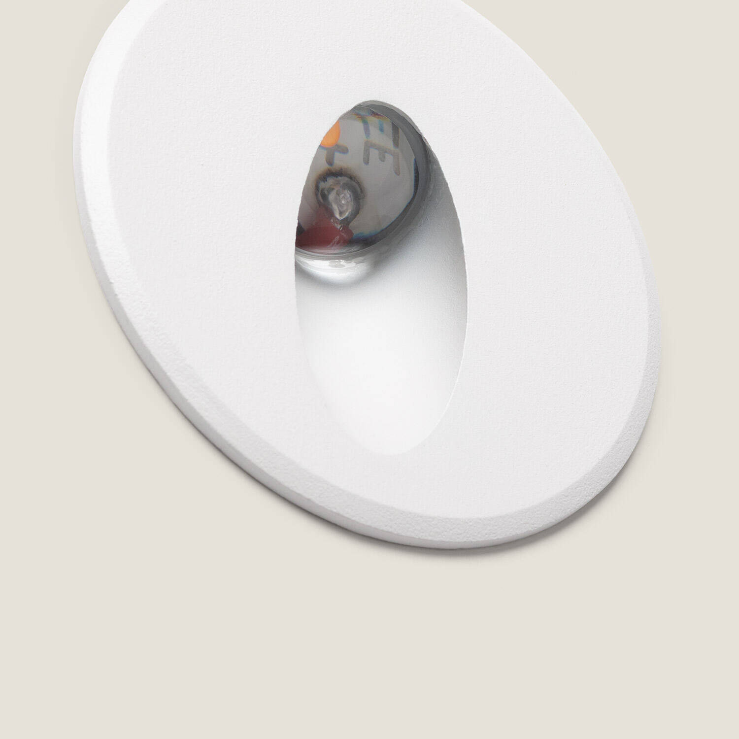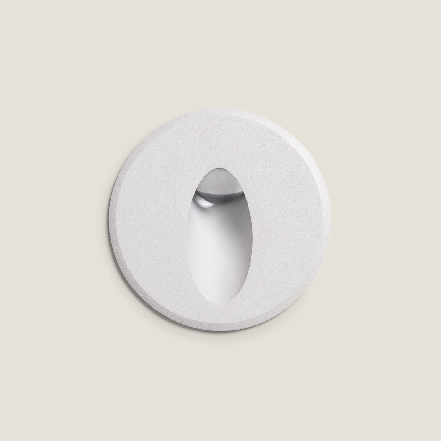 Le boîtier circulaire en aluminium moulé sous pression offre une surface mate blanche raffinée, facile à intégrer dans les projets contemporains. Sa petite profondeur et son diamètre contenu garantissent une pose encastrée discrète, idéale pour préserver l’esthétique des murs sans compromettre la performance lumineuse.