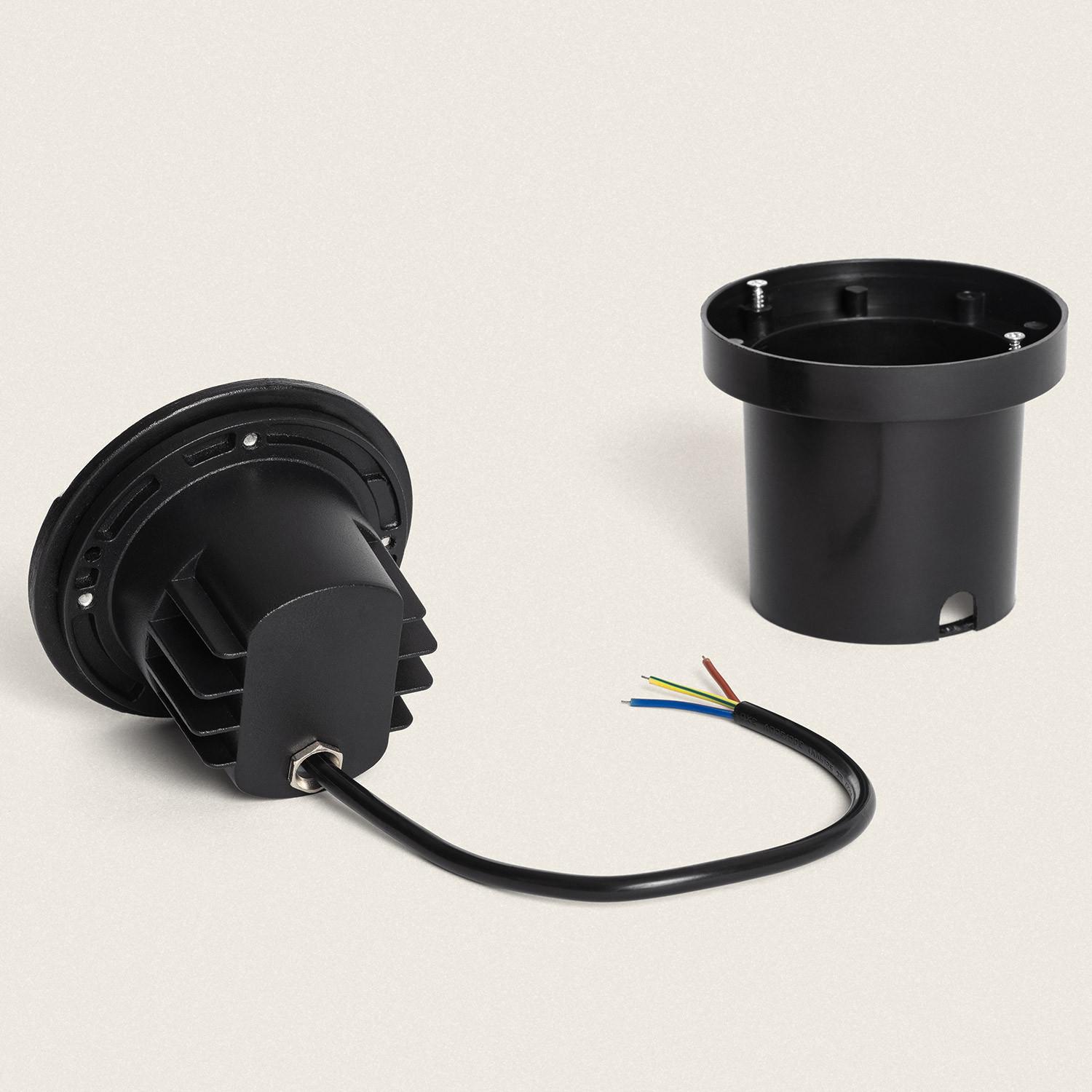 Son diamètre de 100 mm et sa hauteur contenue permettent une intégration soignée au sol sans gêner les passages. Le boîtier en aluminium noir assure une excellente résistance mécanique tout en préservant une esthétique minimaliste, idéale pour les projets paysagers contemporains et l’éclairage architectural.