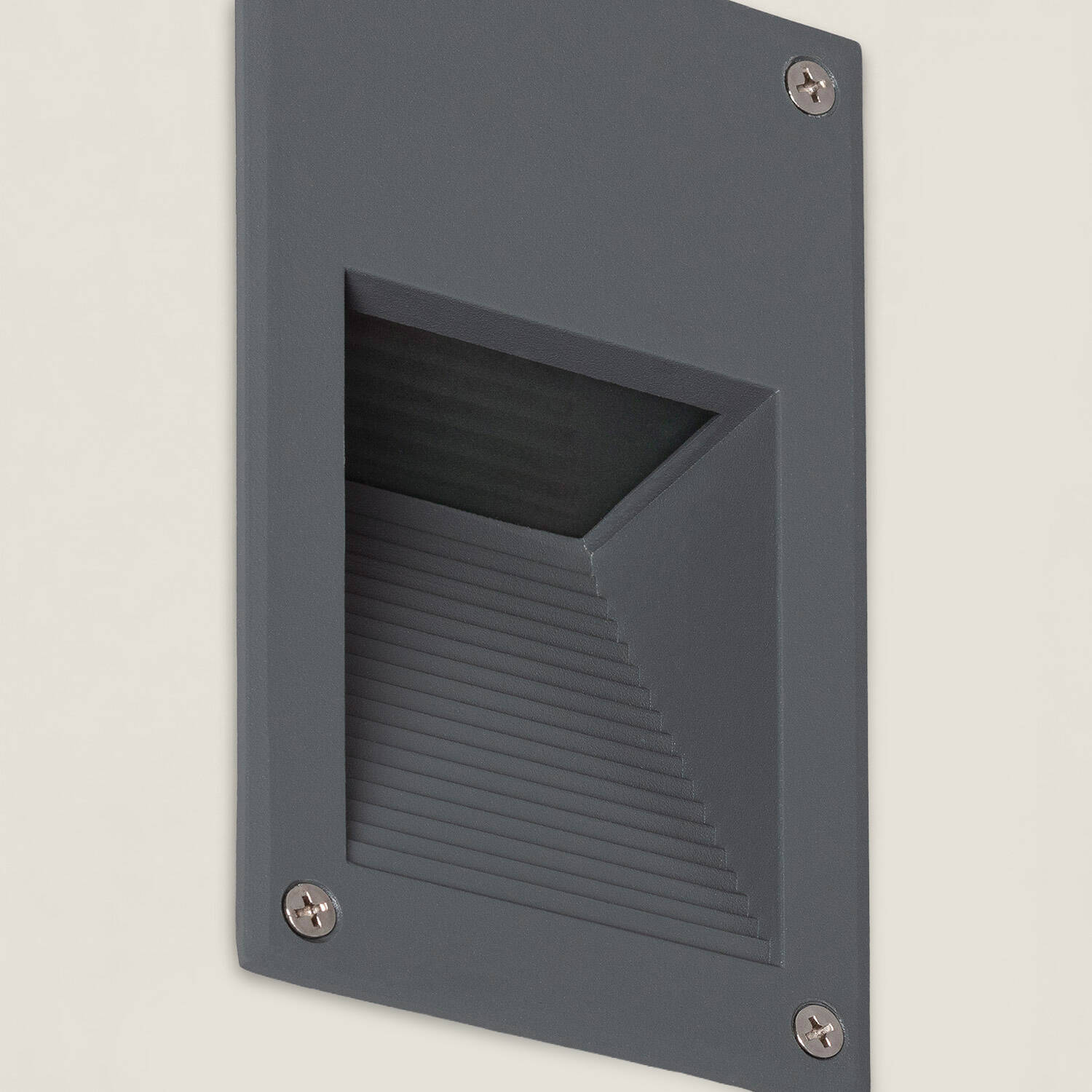 Le format encastré et la finition gris mat en aluminium permettent une pose affleurante parfaitement intégrée aux murs. Les lignes sobres et la fixation soignée créent un rendu architectural contemporain, adapté aux résidences et aux établissements exigeant une esthétique discrète et durable.