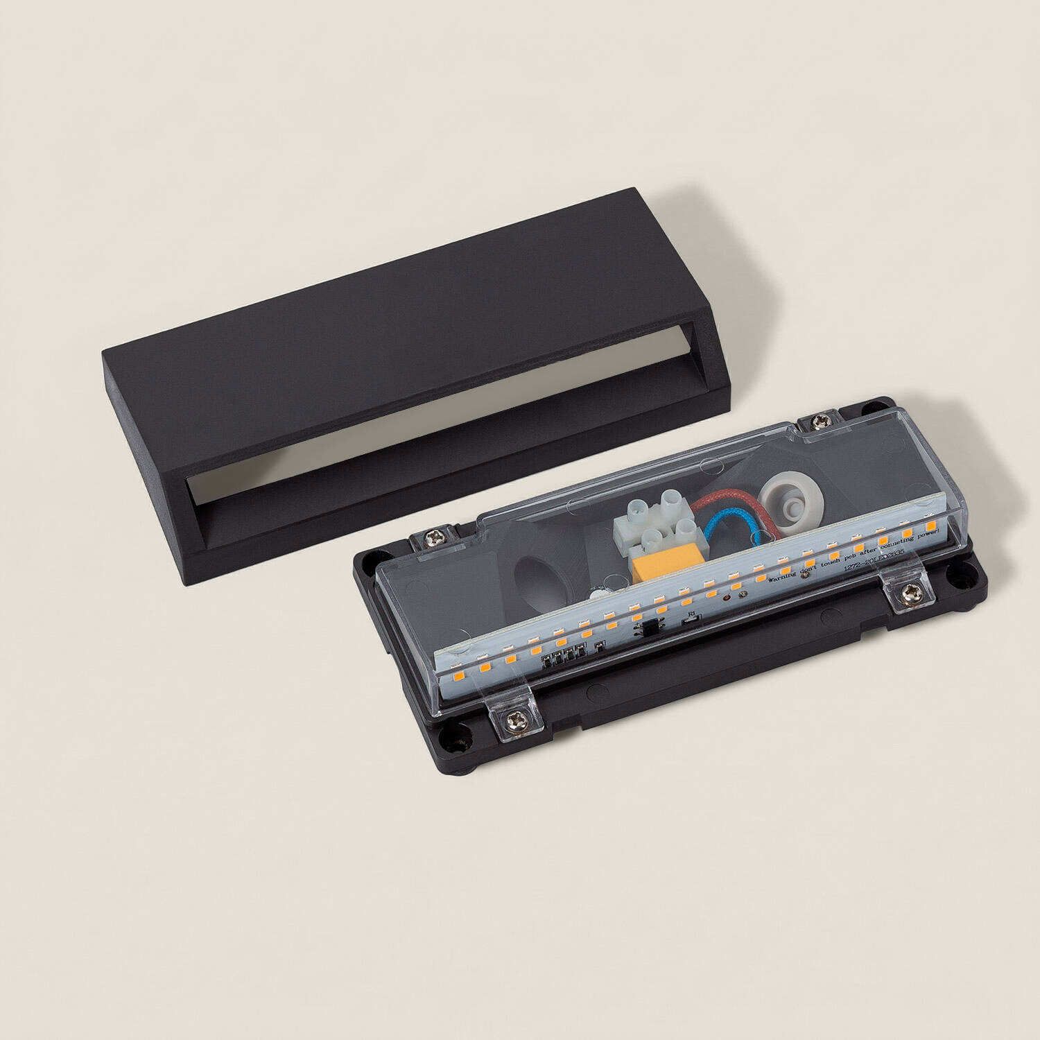 La sortie lumineuse est en blanc chaud 2700K, idéale pour créer une atmosphère chaleureuse autour des entrées, allées ou terrasses. Le flux de 270 lm et le design rectangulaire orientent la lumière vers le bas pour un éclairage d'accent et de sécurité discret.