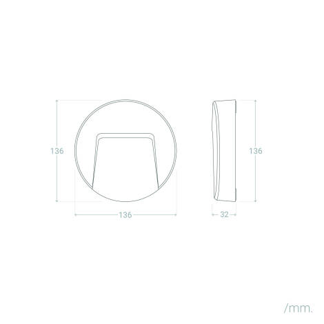 Avec son diamètre de 136 mm et sa faible saillie de 32 mm, cette balise LED murale adopte une présence discrète. Son dessin circulaire épuré et sa finition blanche apportent une touche moderne, idéale pour accompagner une architecture actuelle sans alourdir les volumes.