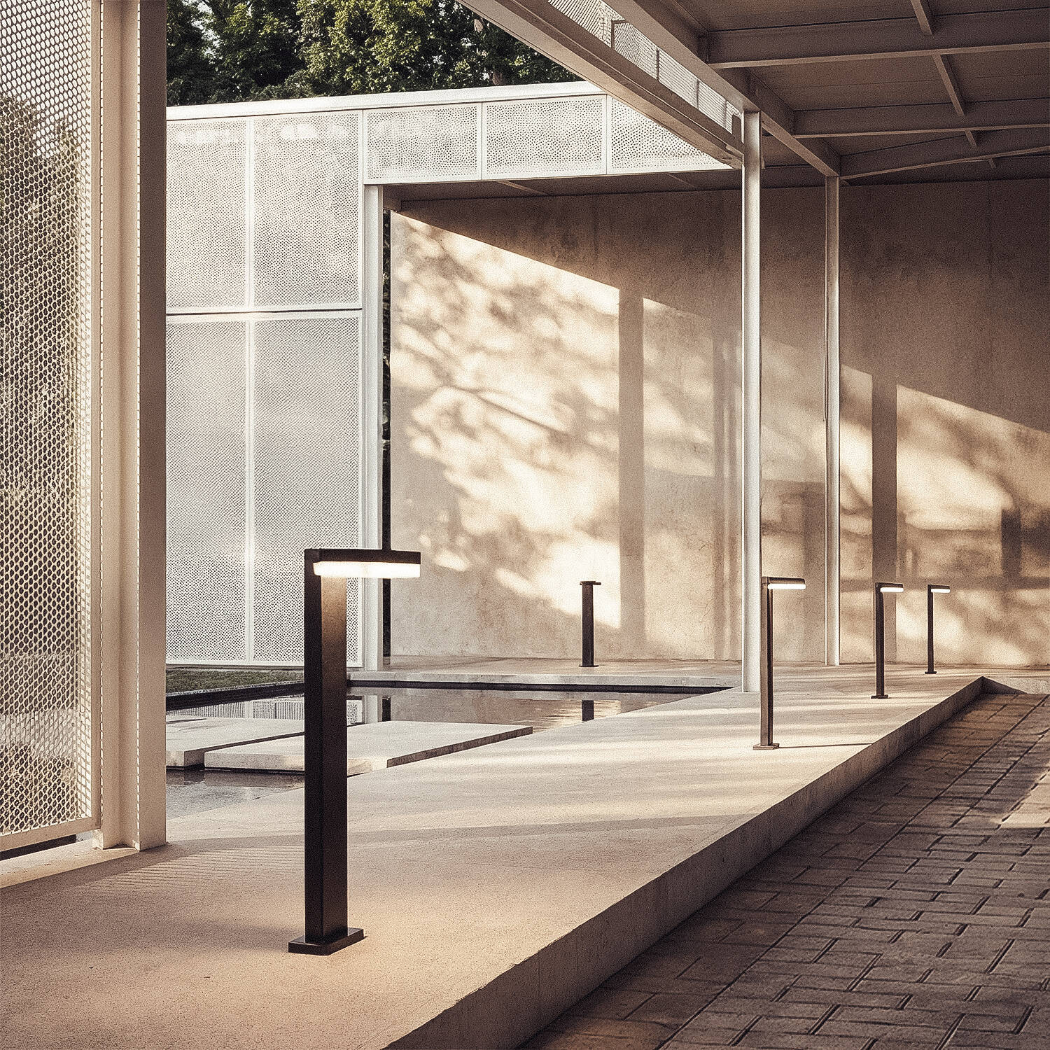 Son esthétique noire et son corps en aluminium brossé incarnent sobriété et modernité. Le design angulaire et l’abat-jour discret s’intègrent naturellement aux aménagements contemporains, proposant une présence visuelle maîtrisée qui élève la qualité perçue sans compromettre l’harmonie du jardin et souligne les lignes architecturales extérieures.
