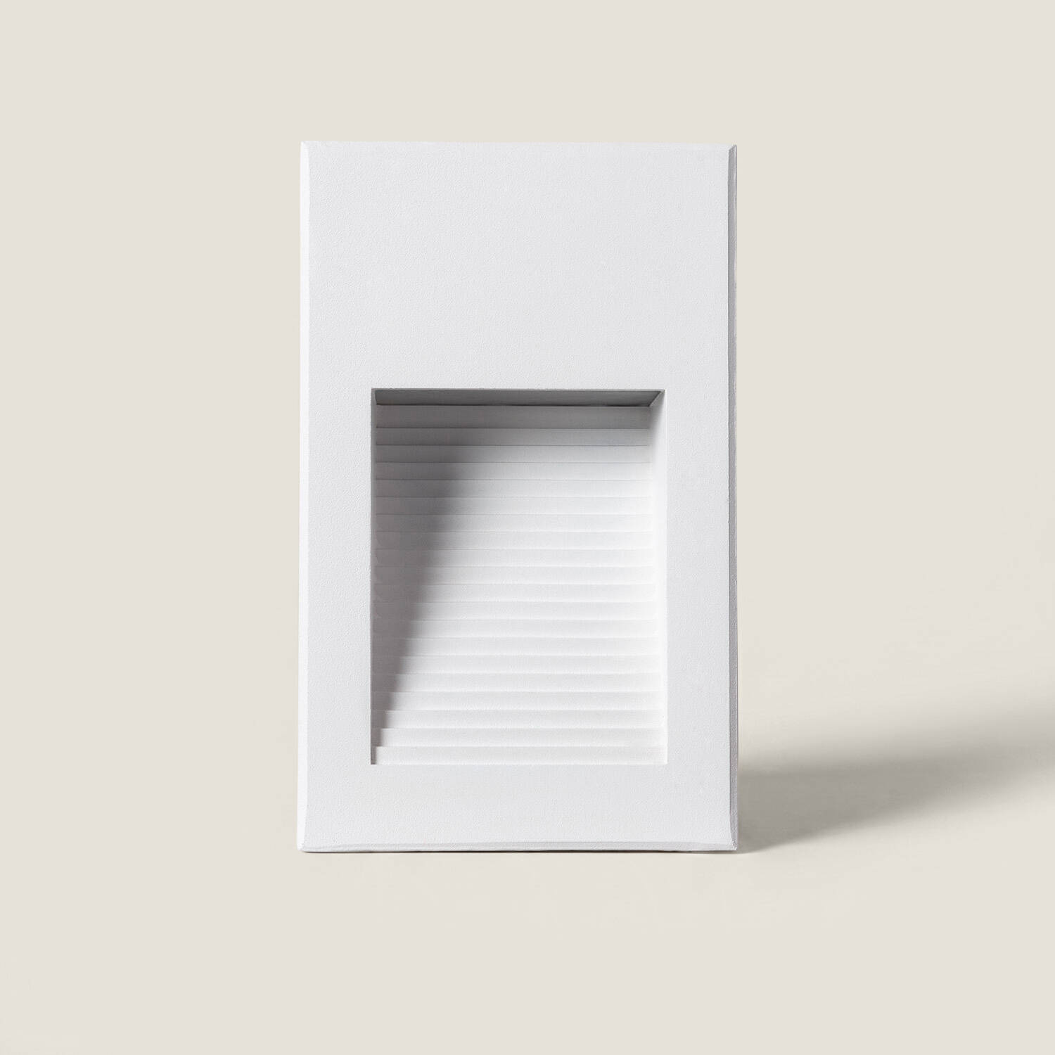 Son format encastré et son profil rectangulaire blanc offrent une intégration discrète et raffinée dans tout projet architectural. Affleurante au mur, la balise préserve les lignes de la façade tout en offrant une finition soignée conçue en aluminium et polycarbonate pour une tenue durable.