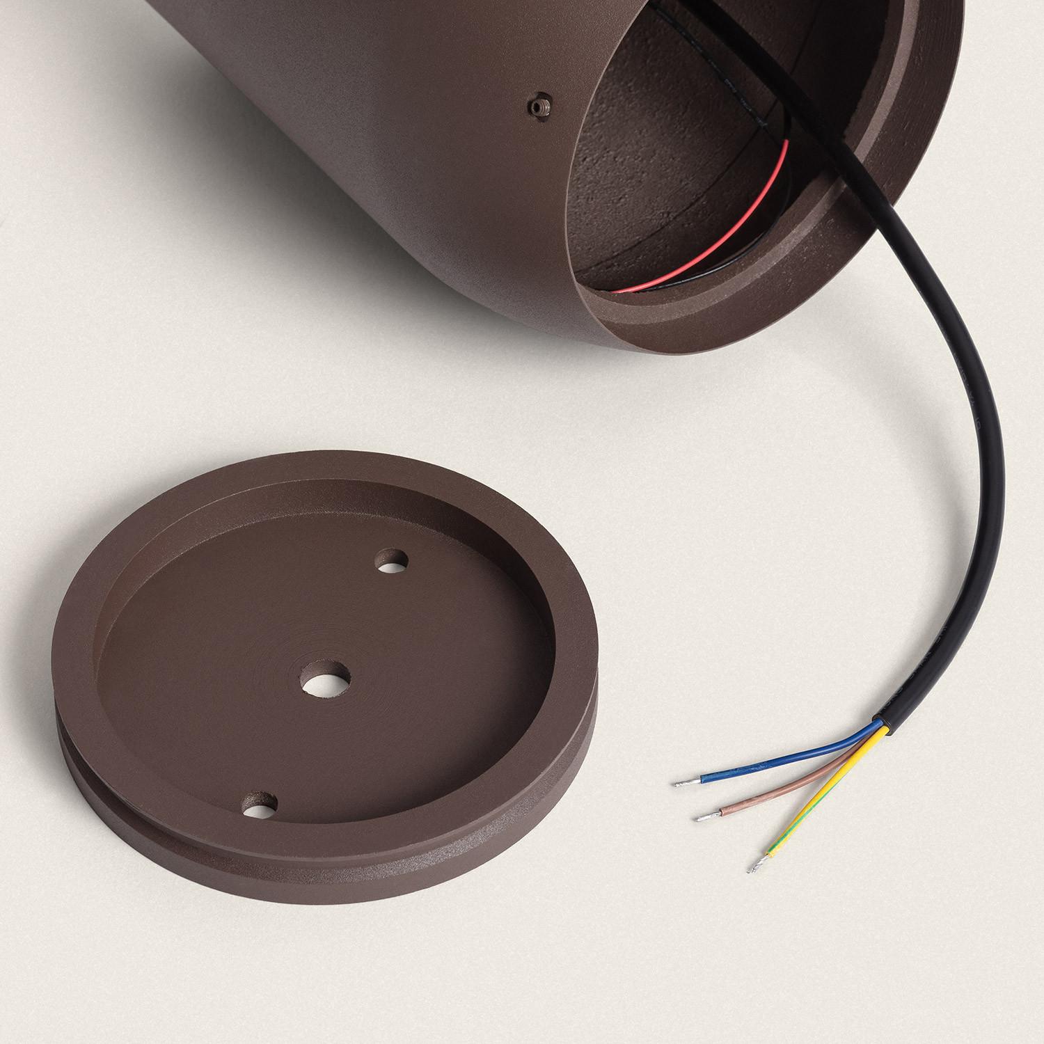 La Balise Extérieure LED 8W sur Pied 38 cm en Saillie Danko Rouille se fixe au sol ou sur surface grâce à la plaque de base visible sous le fût. Elle se raccorde en 220-240V AC via les trois conducteurs visibles sur les photos. Pour un branchement sûr et conforme, faites intervenir un électricien qualifié.